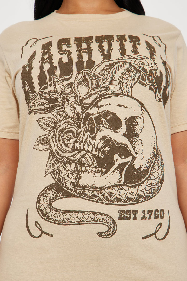 Available In Sand. | Crew Neck | Short Sleeve | Disclaimer: Due To The Printing Process A Difference In Saturation May Occur. Each Garment Is Unique. | 100% Cotton | Imported