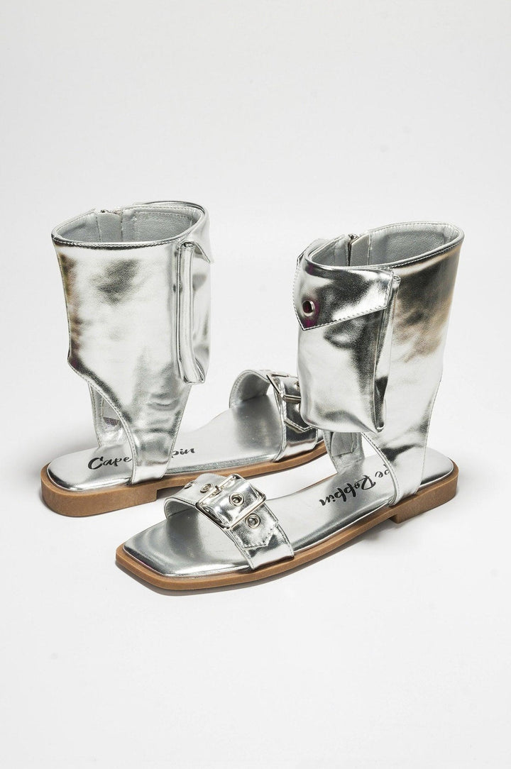 NATALIE - SILVER - SANDALS by CAPE ROBBIN Flat sandal Ankle strap with side zippers PU leahter insole with memory foam cushioning Patent leather upper Square toe These sandals are the perfect blend of sophistication and glamour,featuring a chic metallic pouch detail that adds a touch of elegance to any outfit. The buckle ankle strap ensures a secure fit. Whether you're heading to a special event or simply stepping out for a day of shopping,the Natalie Sandals are sure to turn heads and elevate your look.