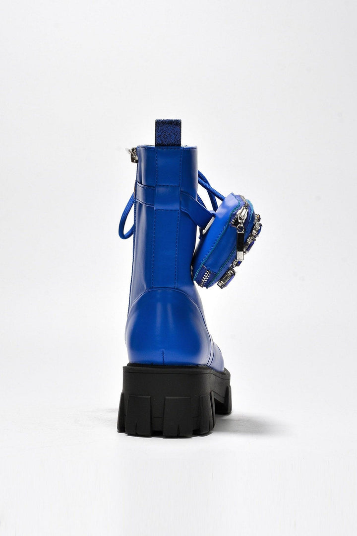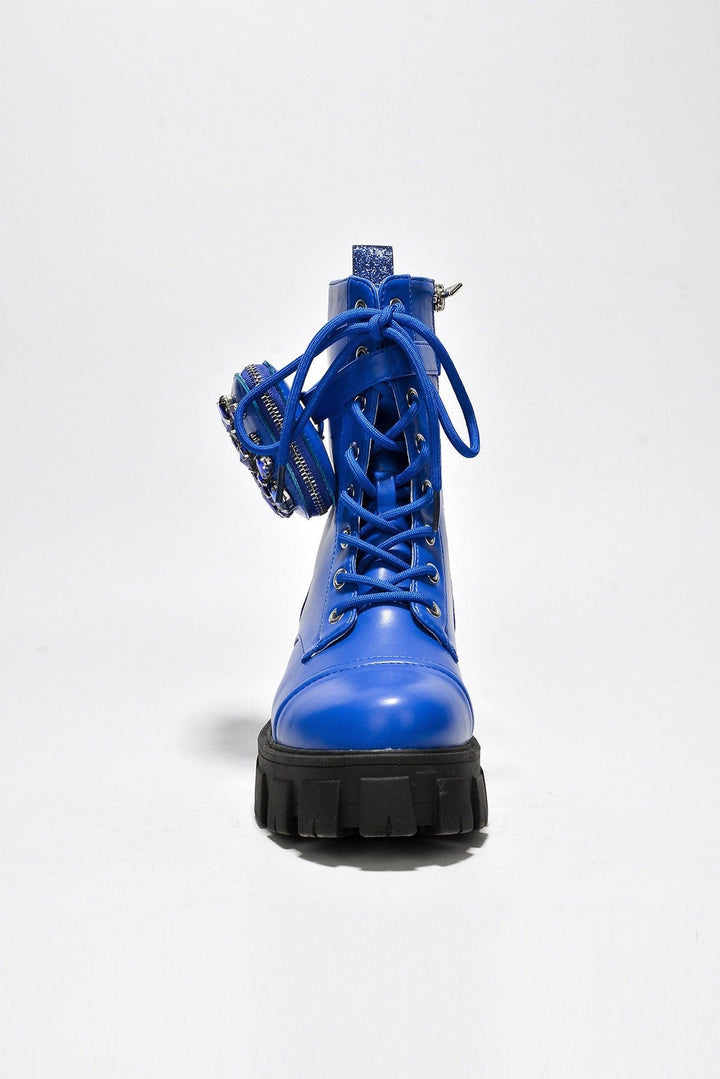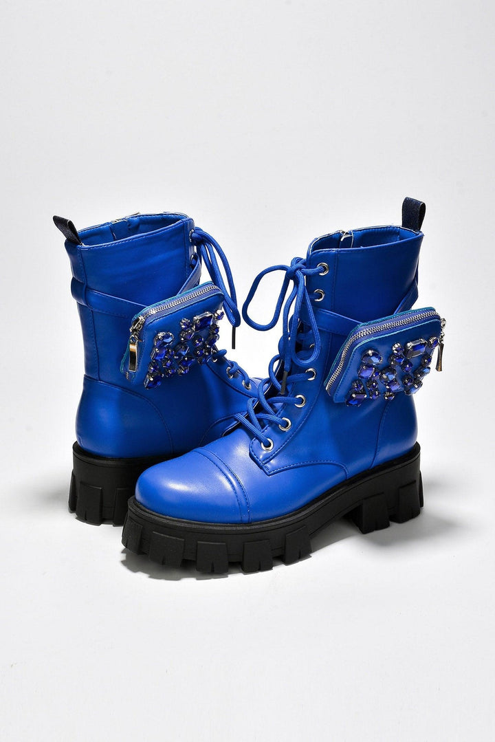 NEMOYA - BLUE - BOOTIES by CAPE ROBBIN closed round toe pouch detail zipper closure pull tab lace up vamp rubber outsole memory foam footbed It's time to make an entrance! The chic Nemoya features a chunky lug sole for all-terrain fun. Plus,the rhinestone and gem trim adds a splash of sparkle.