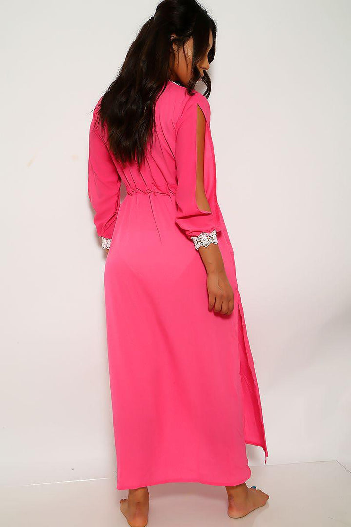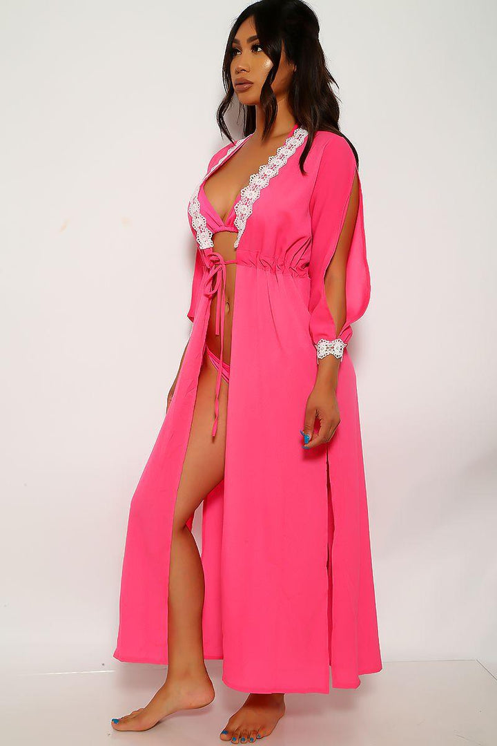 Neon Pink Mesh Three Piece Swimsuit Set