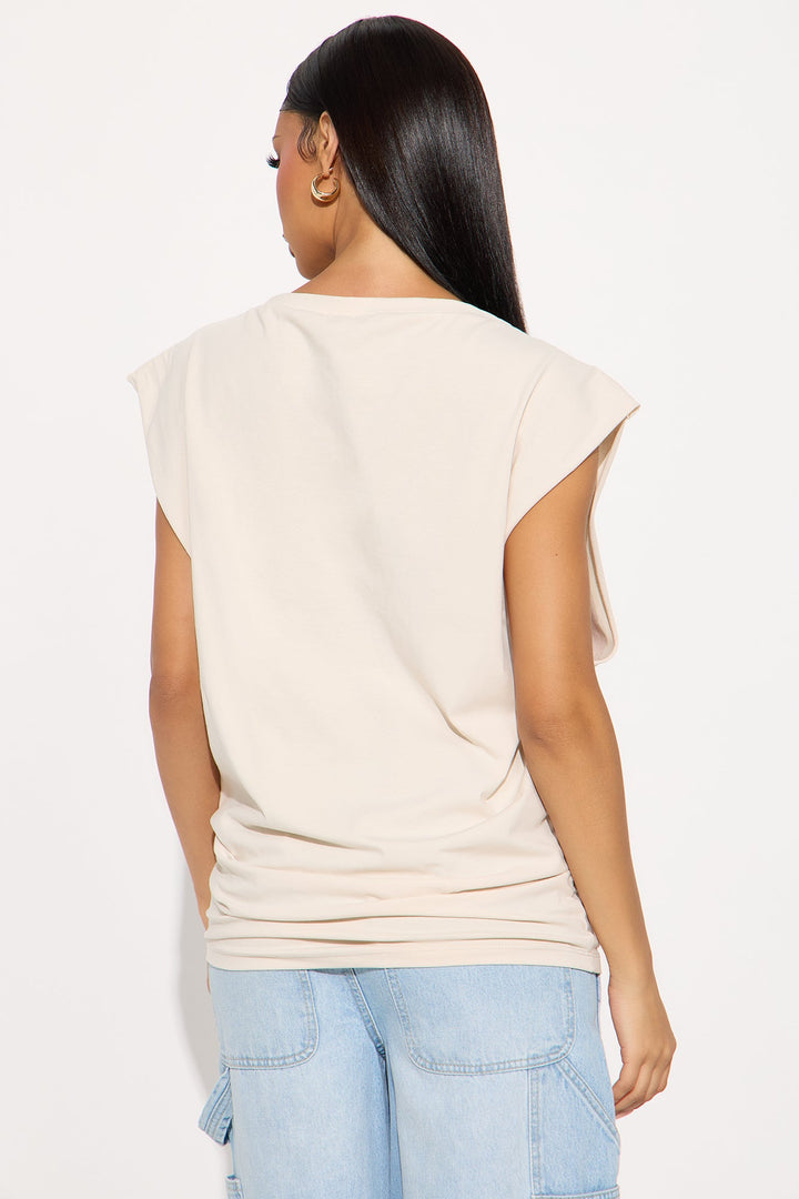 Available In Cream. | Tank Top | Sleeveless | Off Shoulder | Front Screen | Self : 95% Cotton 5% Spandex | Imported
