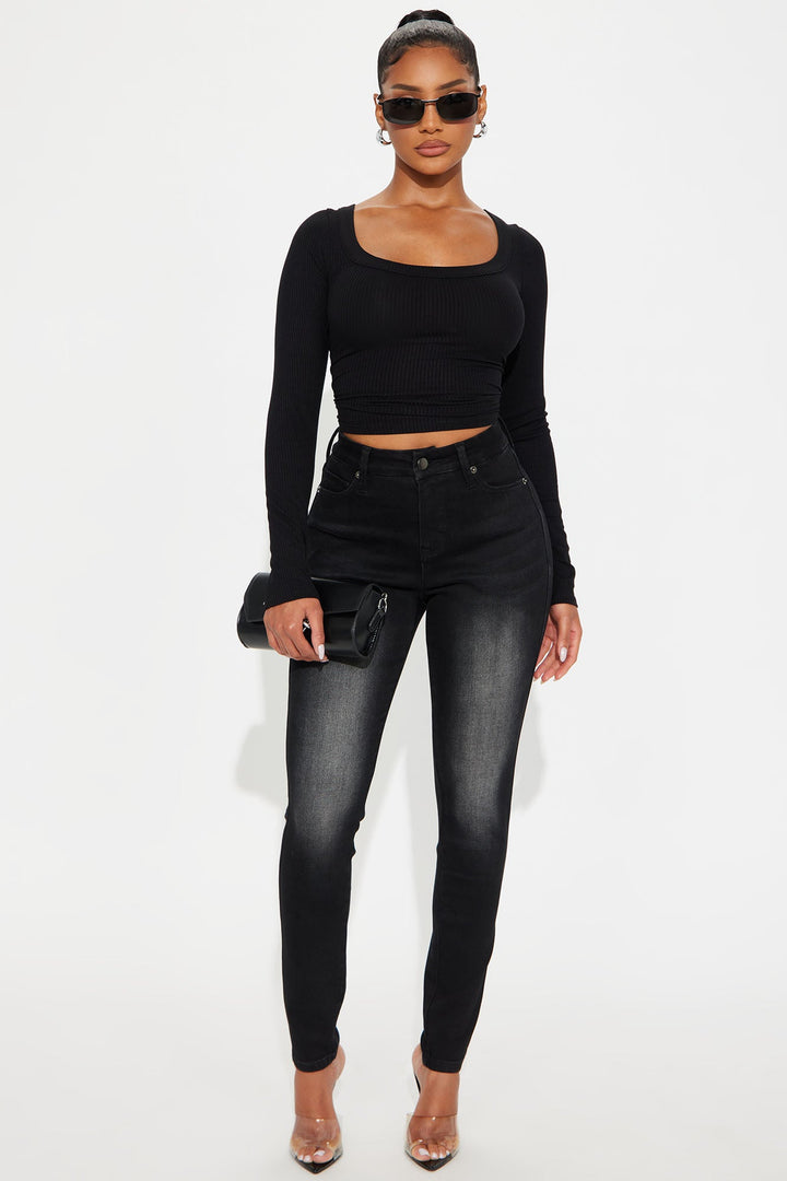 Nikki Ribbed Long Sleeve Basic Top - Black