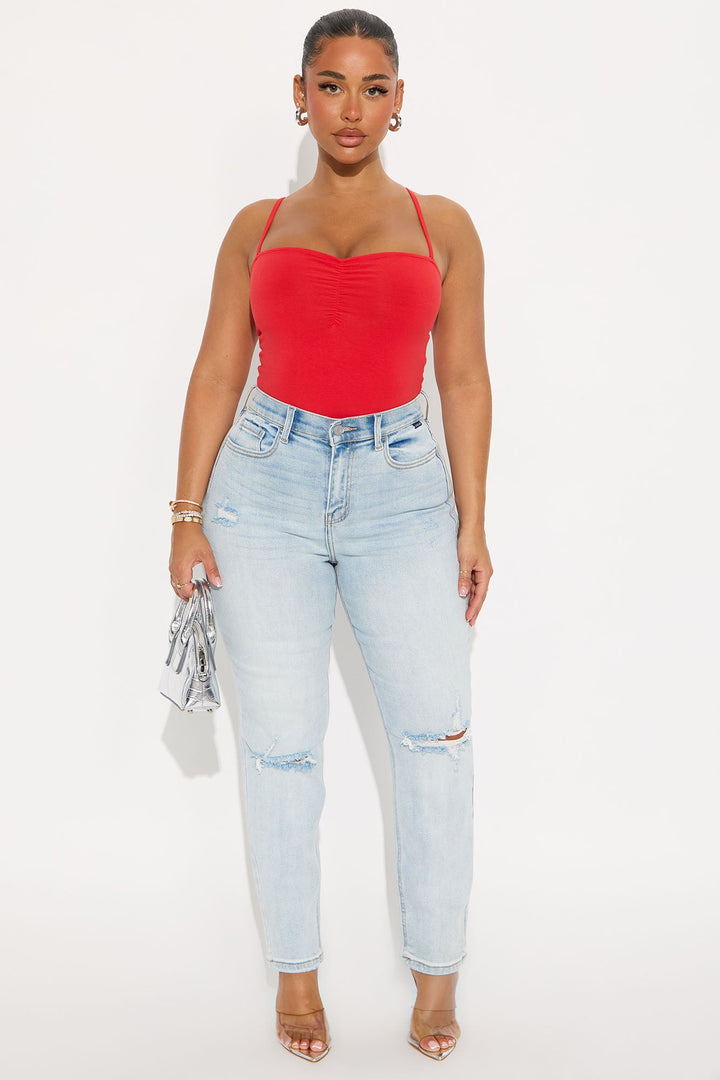 Available In Red And Yellow. | Cami | Sweetheart Neckline | Adjustable Spaghetti Straps | Ruched | Stretch | Body: 93%Cotton 7%Spandex | Imported