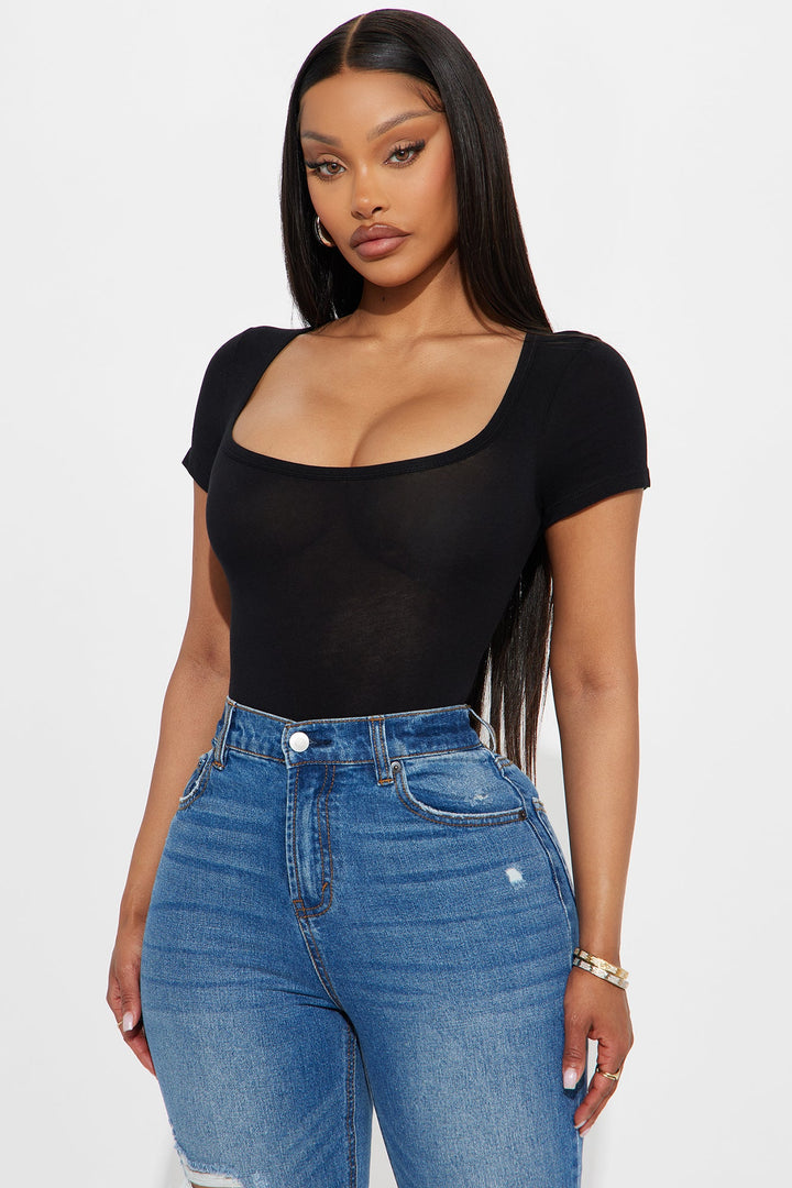 Nira Square Neck Basic Bodysuit - Black