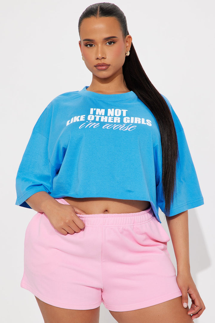 Available In Blue And Grey. | Crew Neck | Short Sleeve | Front Screen | Stretch | Disclaimer: Due To The Printing Process A Difference In Saturation May Occur, each Garment Is Unique. | 100% Cotton | Imported