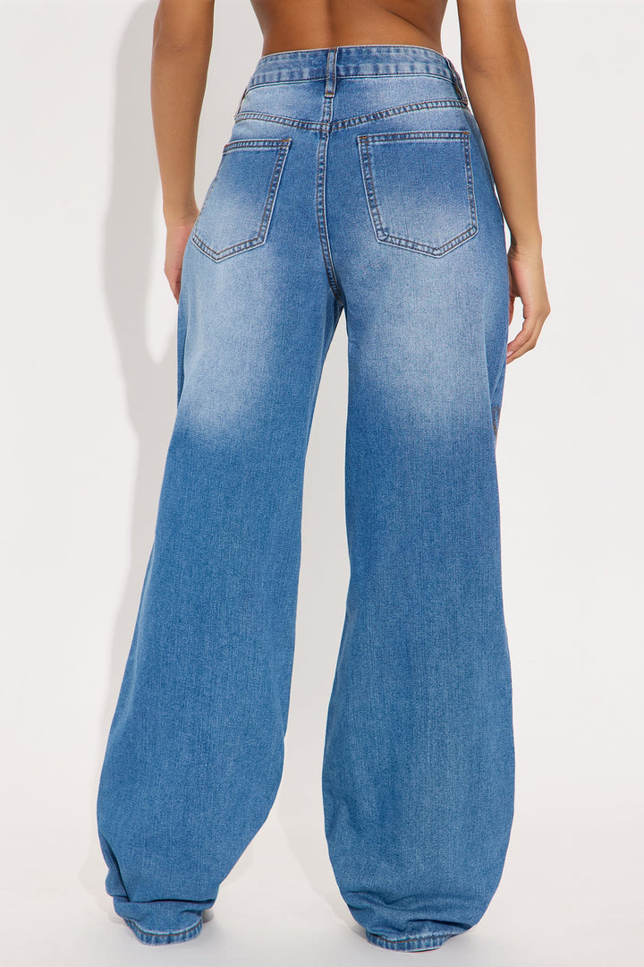 Nothing Like London Embroidered Baggy Jeans - Medium Wash