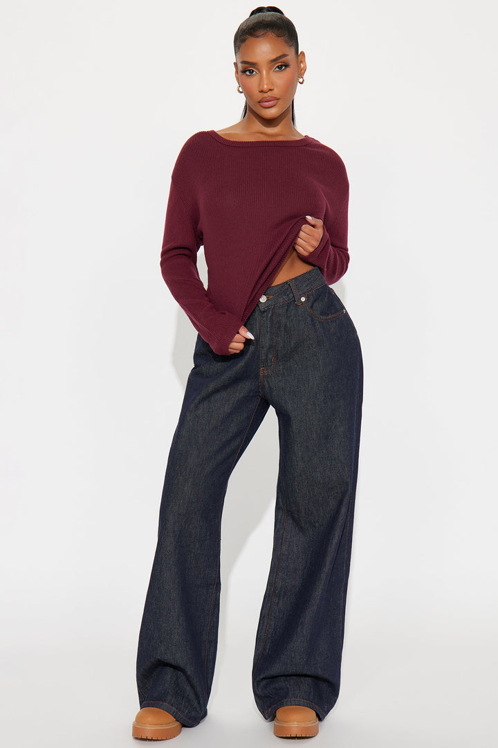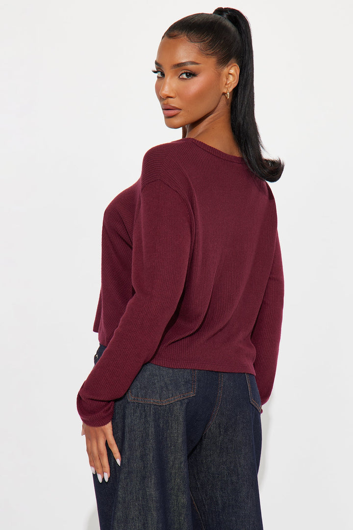 Odette Crew Neck Hacci Long Sleeve Top - Wine