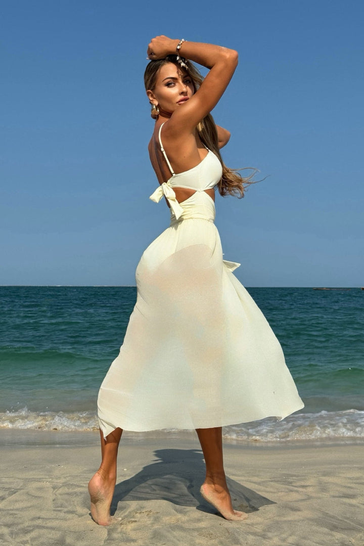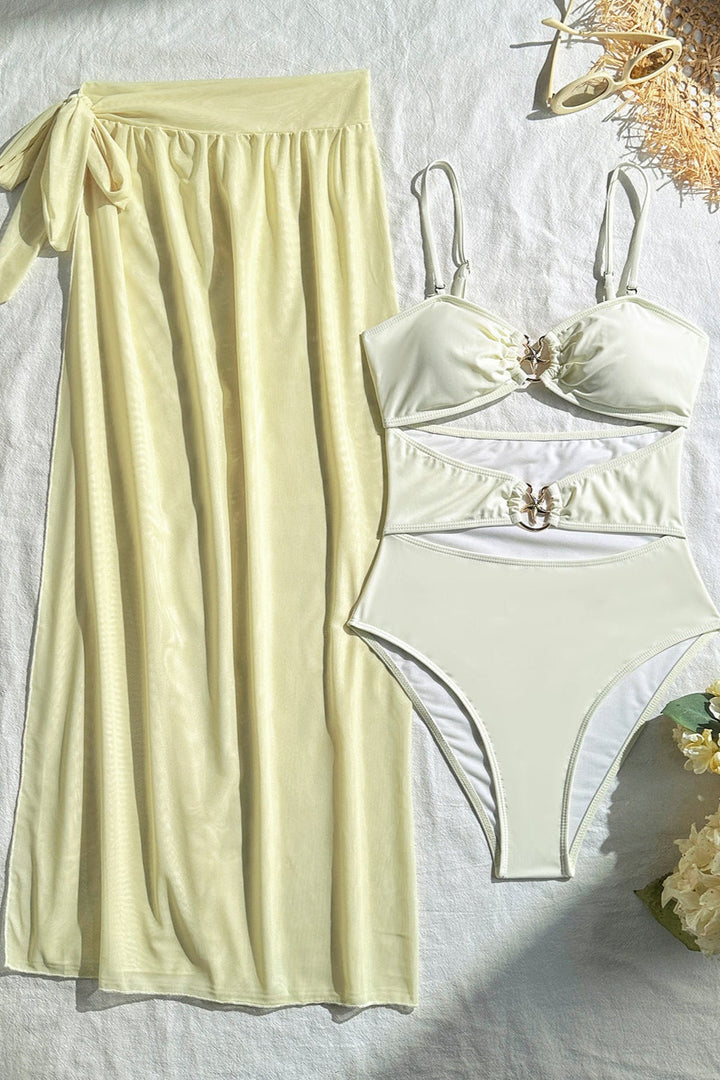 Get beach-ready with our Off White Gold Starfish Cut-Out Monokini Maxi Cover-Up Sexy 2Pc Swimsuit Set. This versatile 2-piece set features a playful starfish cut-out design and a flowy maxi cover-up. Perfect for turning heads at the pool or the beach. Dive into style with this unique swimsuit set!