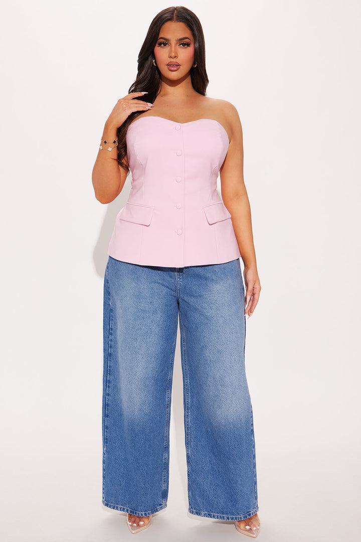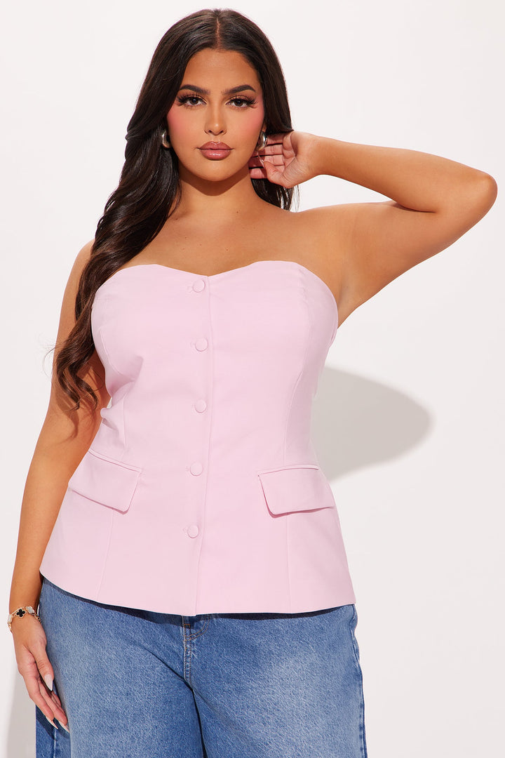 Available In Black And Pink. | Vest Top | Strapless | Sweetheart | Button Down | 2 Pocket Details | Non Stretch | Shell 92% Polyester 8% Spandex | Lining 97% Polyester 3% Spandex | Imported