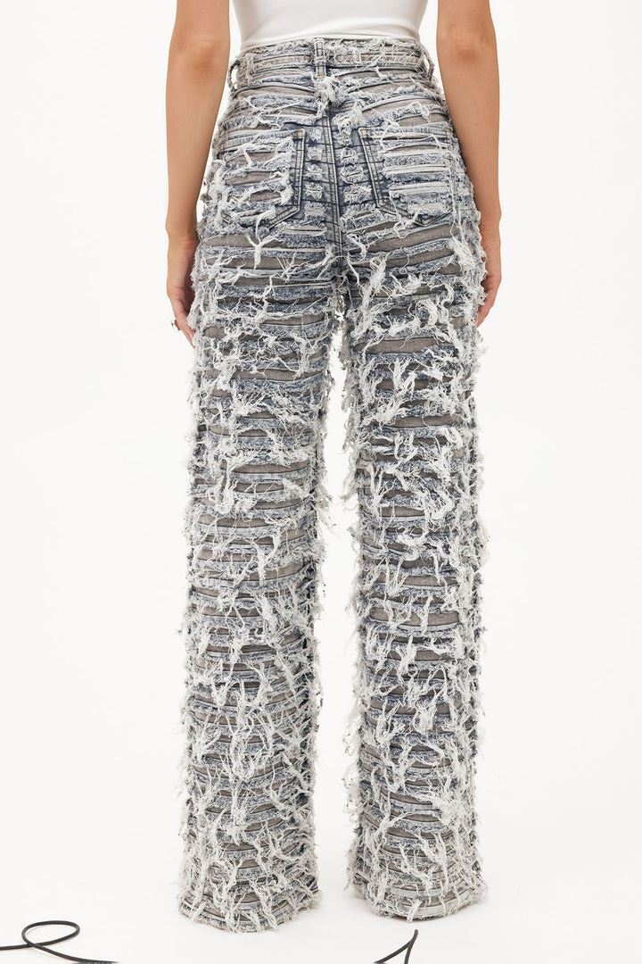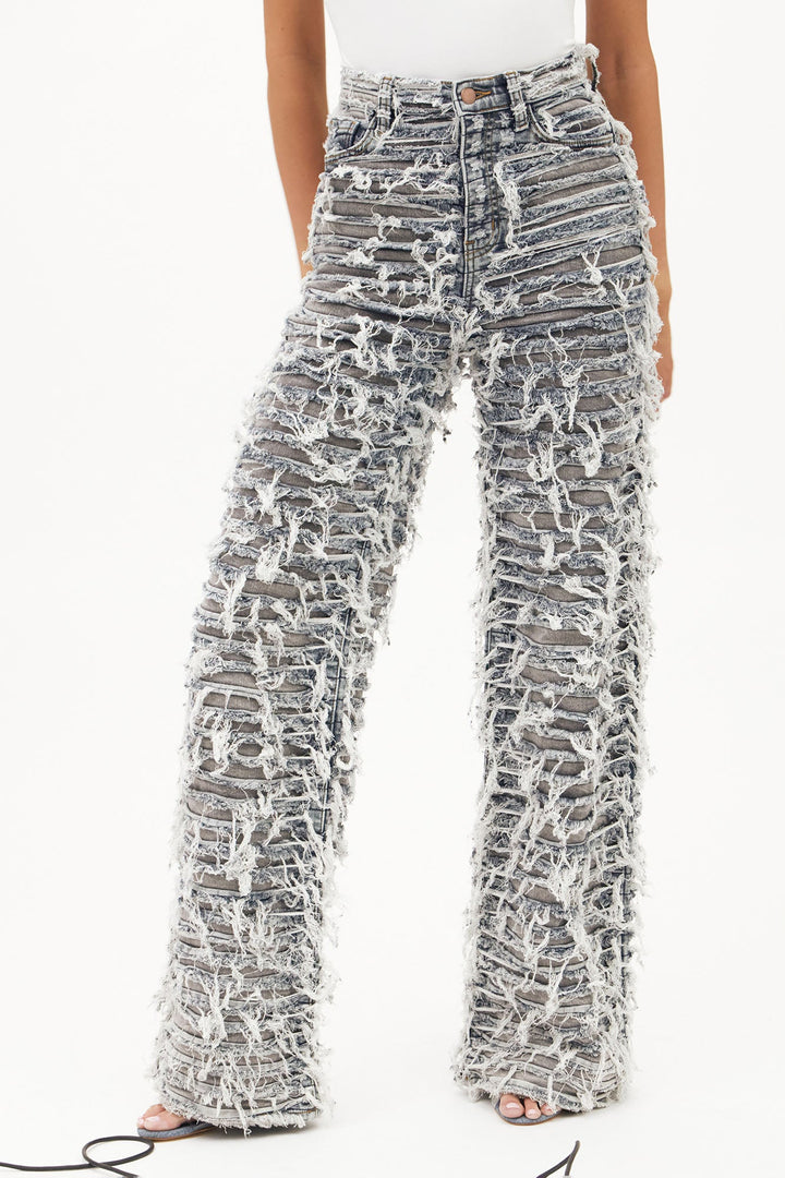 Available In Grey/combo. | Straight Leg Jean | 5 Pocket | Shredded | Two Tone | 34" Inseam | 12" High Rise | Low Stretch | Disclaimer: Due To The Distressing and wash Process, Each Garment Is Unique | Self: 98% Cotton 2% Spandex | Contrast: 97% Cotton 3% Spandex | Imported