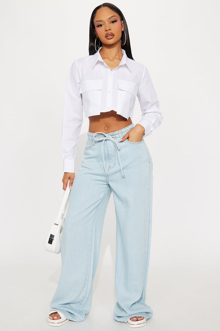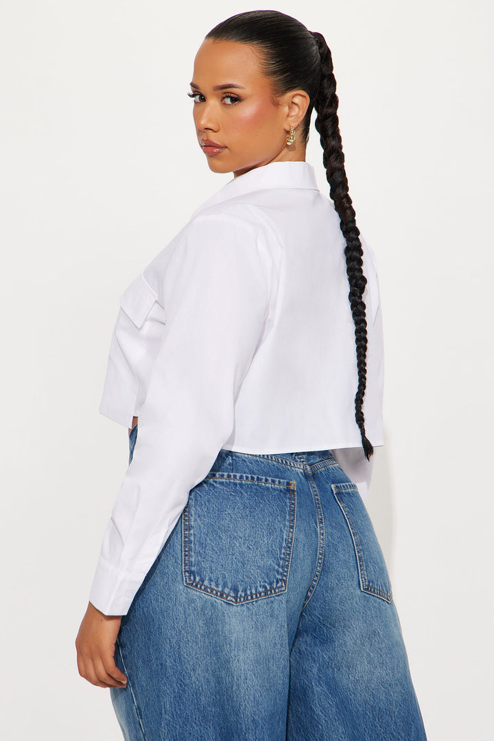 On My Way Cropped Poplin Shirt - White