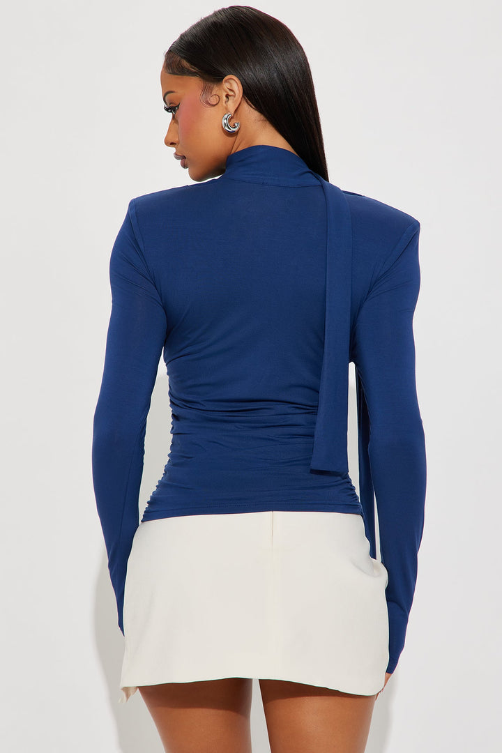 On Rehearsal Long Sleeve Cowl Neck Top - Navy