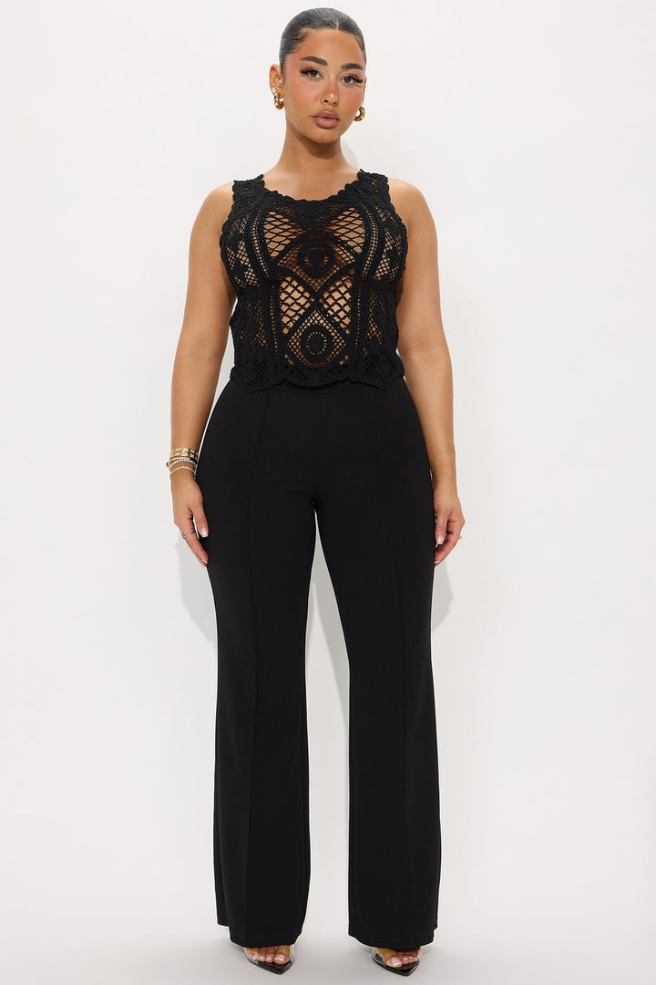 Available In Black. | Crochet Top | Self: 65% Polyester 35% Cotton | Imported