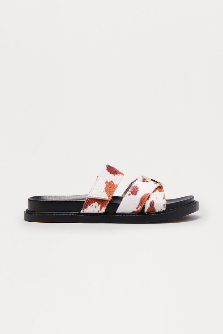 Owen Hardware Faux Suede Slides - Brown/combo