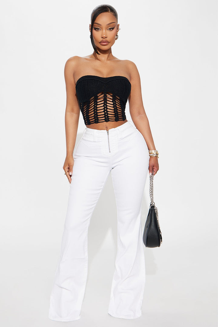 Available In Black And Cream. | Tube Top | Cut Out Detail | Shell: 100% Acrylic | Imported