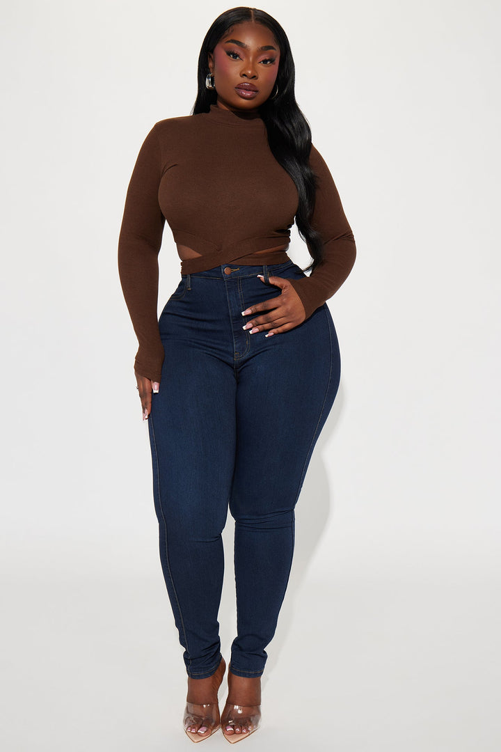 Available In Black, Brown And White. | Crop Top | Long Sleeve | Mock Neck | Side Cut Out | Stretch | 58% Cotton 39% Rayon 3% Spandex | Imported