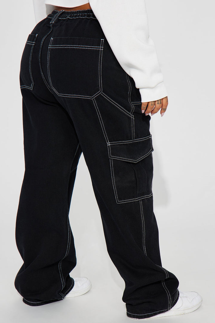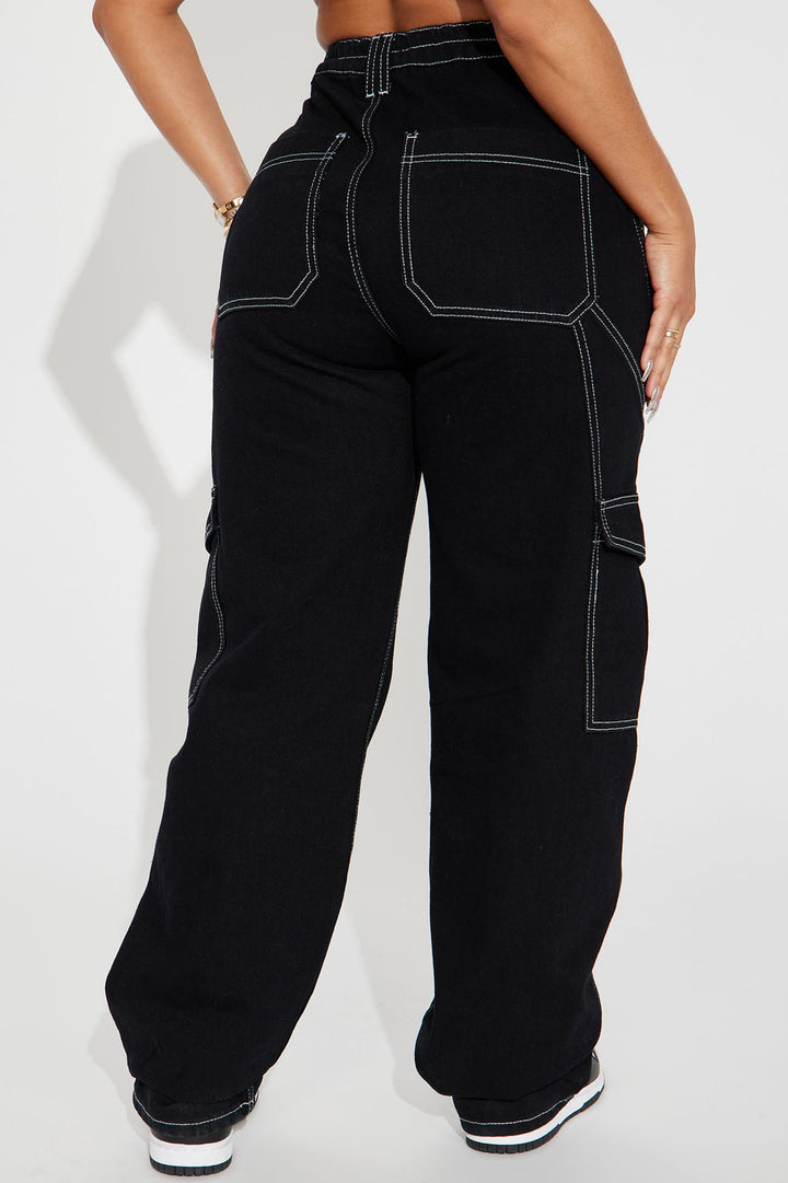 Petite Give Me A Break Cargo Carpenter Jeans - Black