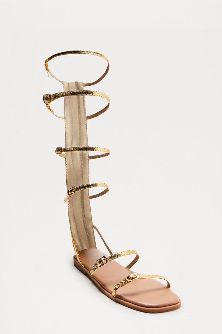 Available In Black And Gold. | Gladiator Flat Sandals | Buckle Detail | Zipper Detail | Square Toe | Flat Heel | Imported