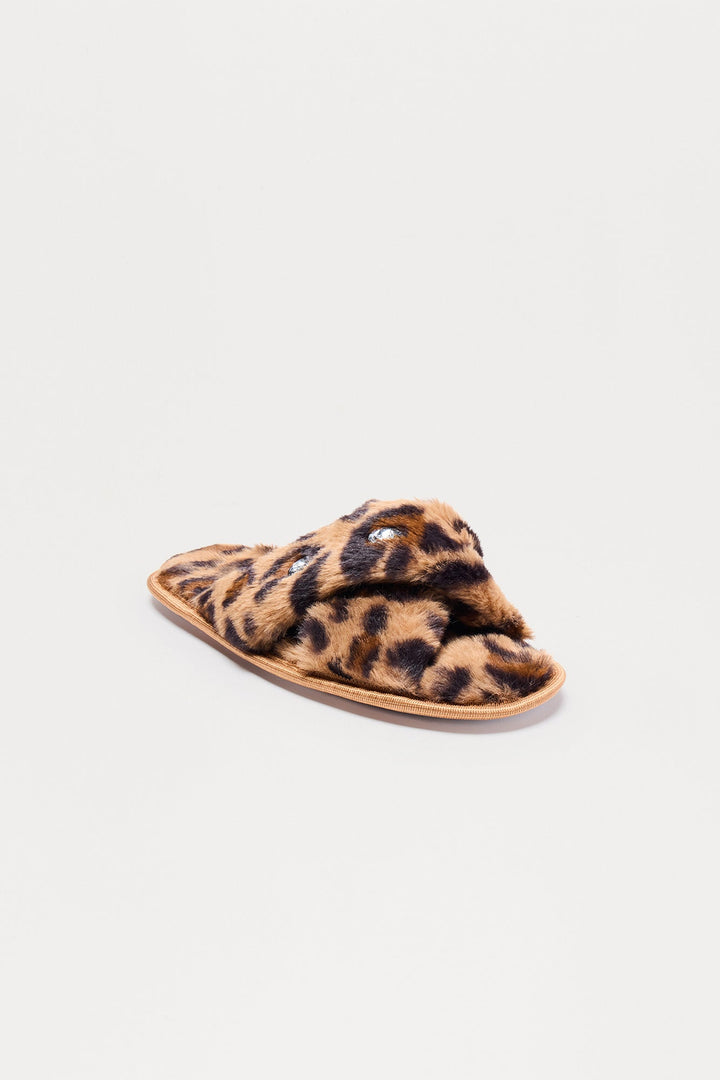 Piper Rhinestone Faux Fur Slippers - Leopard