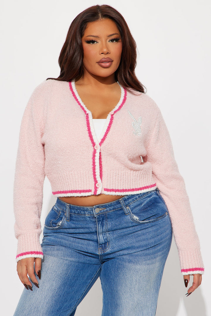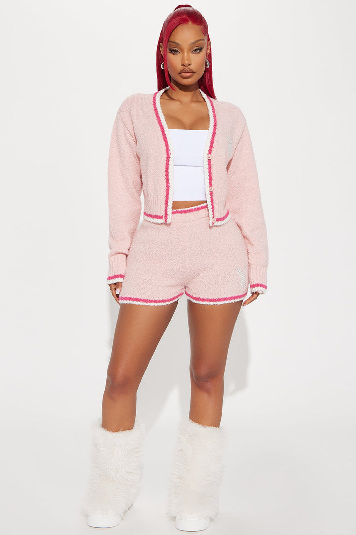 Available In Pink. | V-Neck | Long Sleeve | Front Screen | Button Up Detail | Rhinestone Detail | Embroidery Detail | Stretch | Pair To "Playboy Princess Rhinestone Cozy Shorts" | 95% Polyester 5% Spandex | Imported