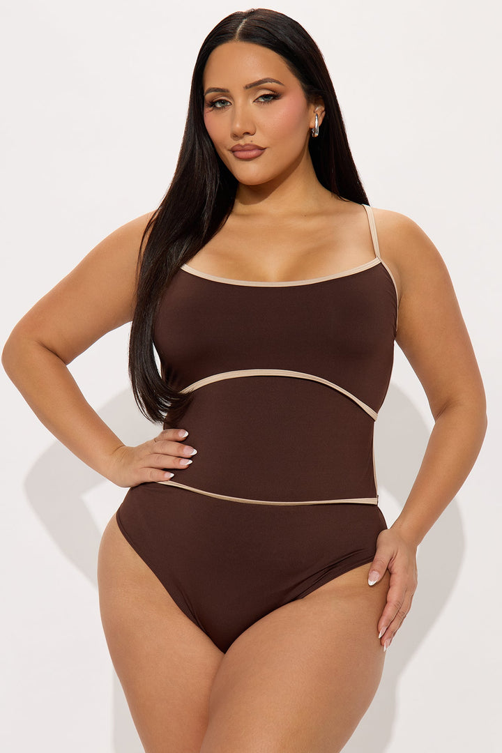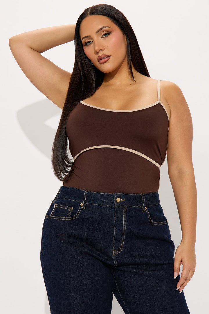 Playful Competition Scoop Neck Contrast Trim Bodysuit - Chocolate