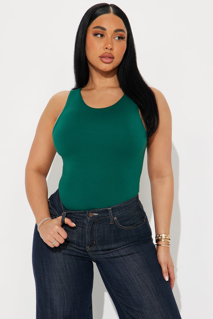 Available In Black, Heather Grey, Hunter Green, Olive, Taupe And White. | Bodysuit | Sleeveless | Crew Neck | Snap Button Closure | Cheeky Bottom | Double Layered | Final Sale | 96% Polyester , 4% Spandex | Imported