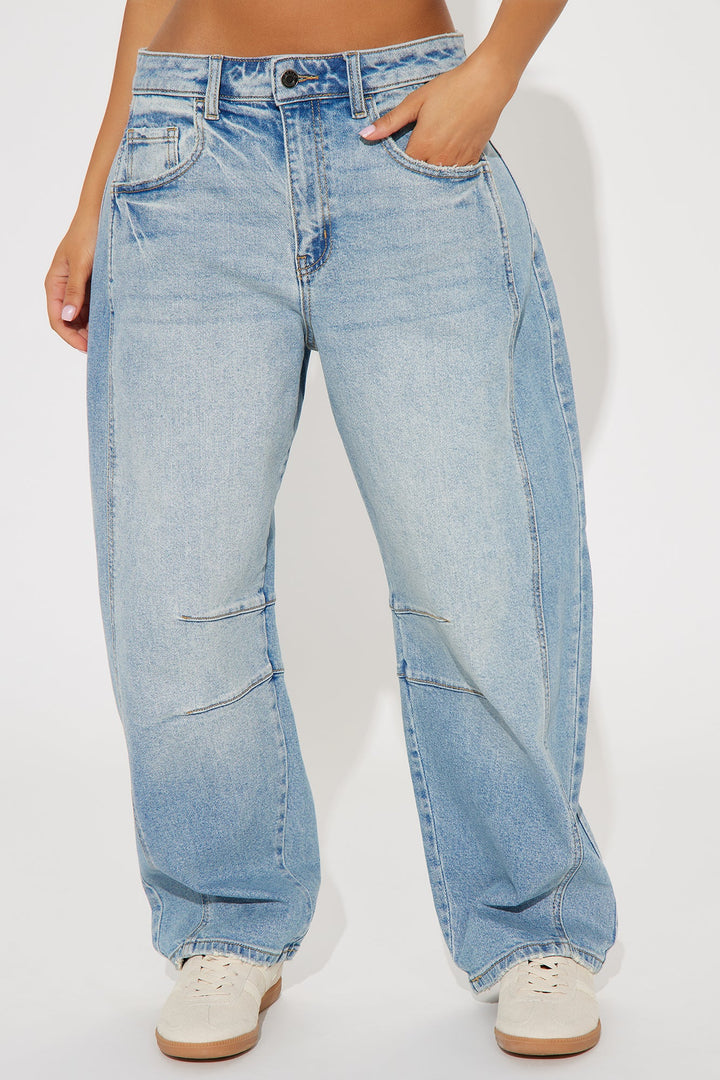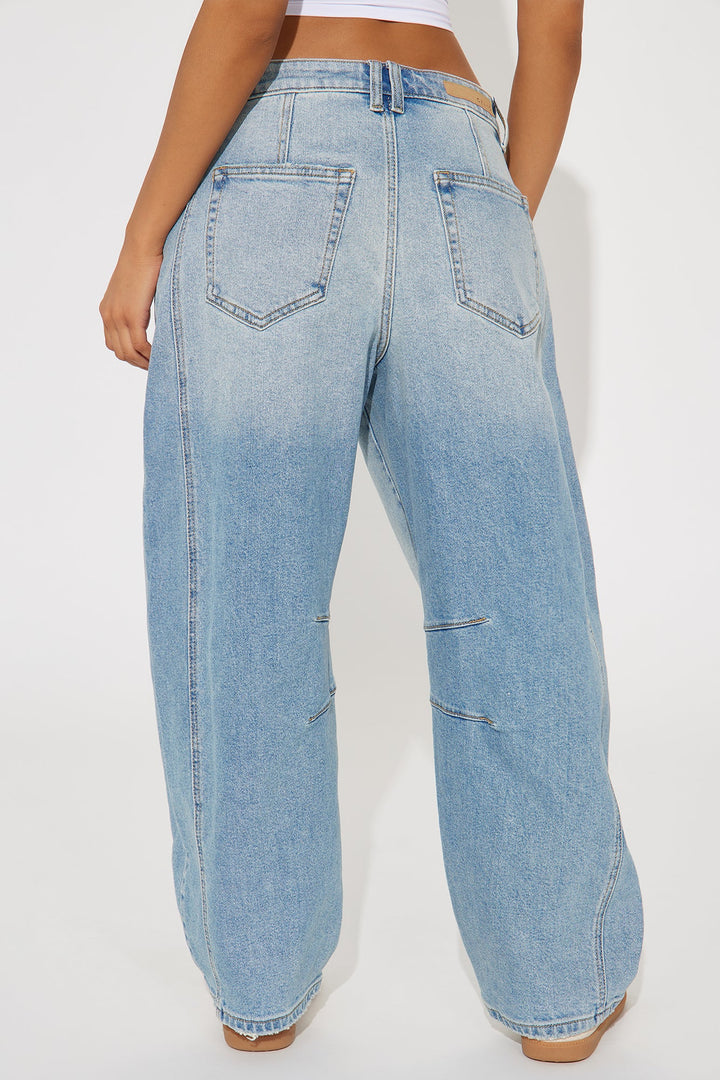 Available In Medium Wash. | Barrel Leg Jean | 5 Pocket | Tinted | Seaming | 11.75" High Rise | 27" Inseam | Low Stretch | Disclaimer: Due To The Specialized Wash Process, Each Garment Is Unique. | 99% Cotton 1% Spandex | Imported