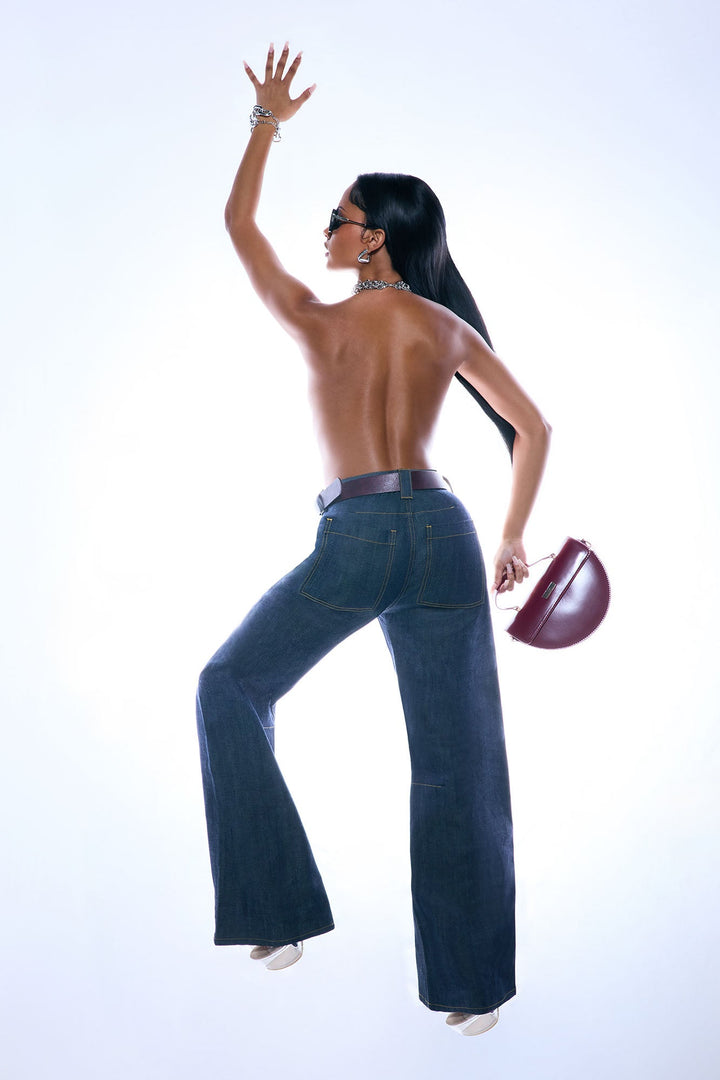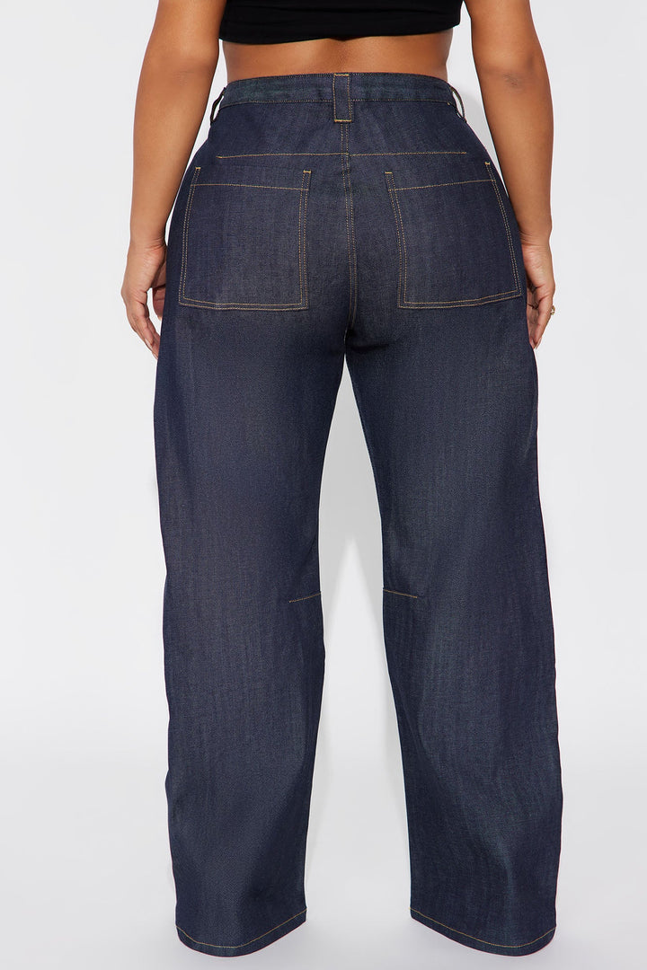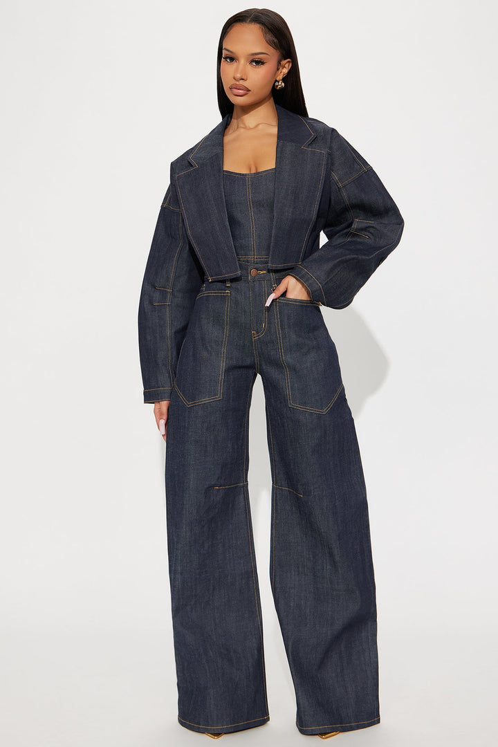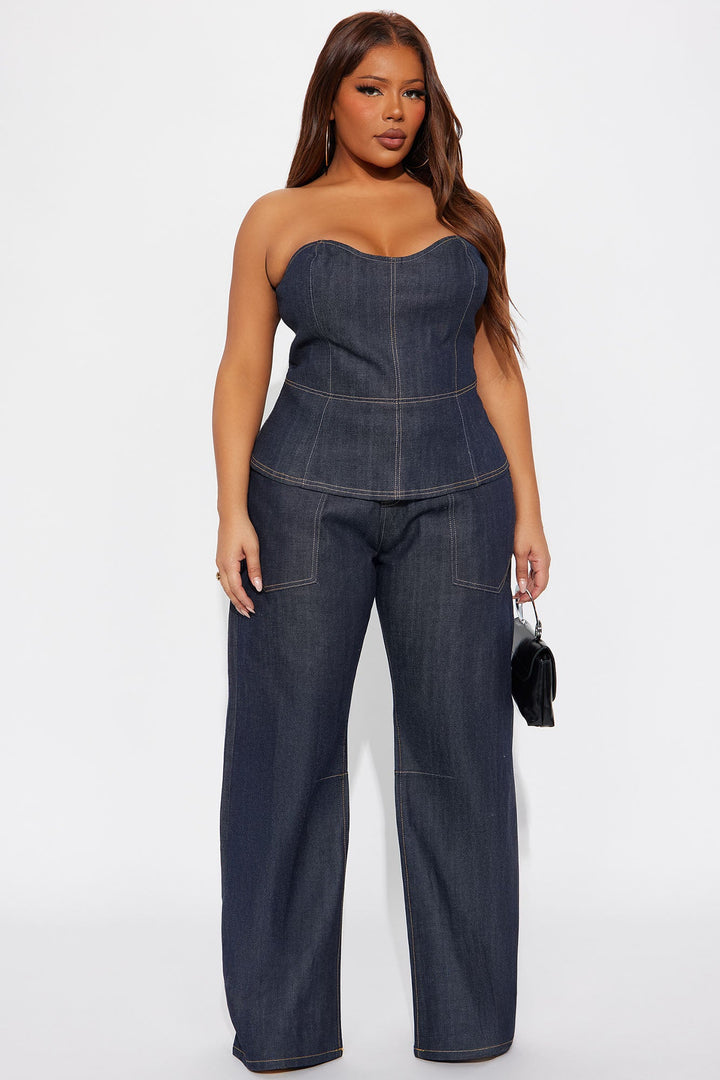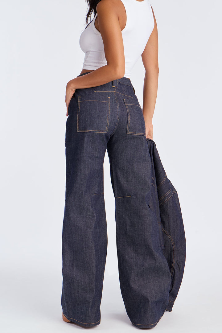 Available In Dark Denim. | Pair With Premium Selvedge Denim Bustier Top | Wide Leg Jean | Disclaimer: Due the To The Specialized Dye Process, Loose Dye Can Stain On Contact. Do Not Wash with Other Garments | Cargo Pockets | Utility Detail | 11" Rise | 34" Inseam | Low Stretch | 99% Cotton 1% Spandex | Imported