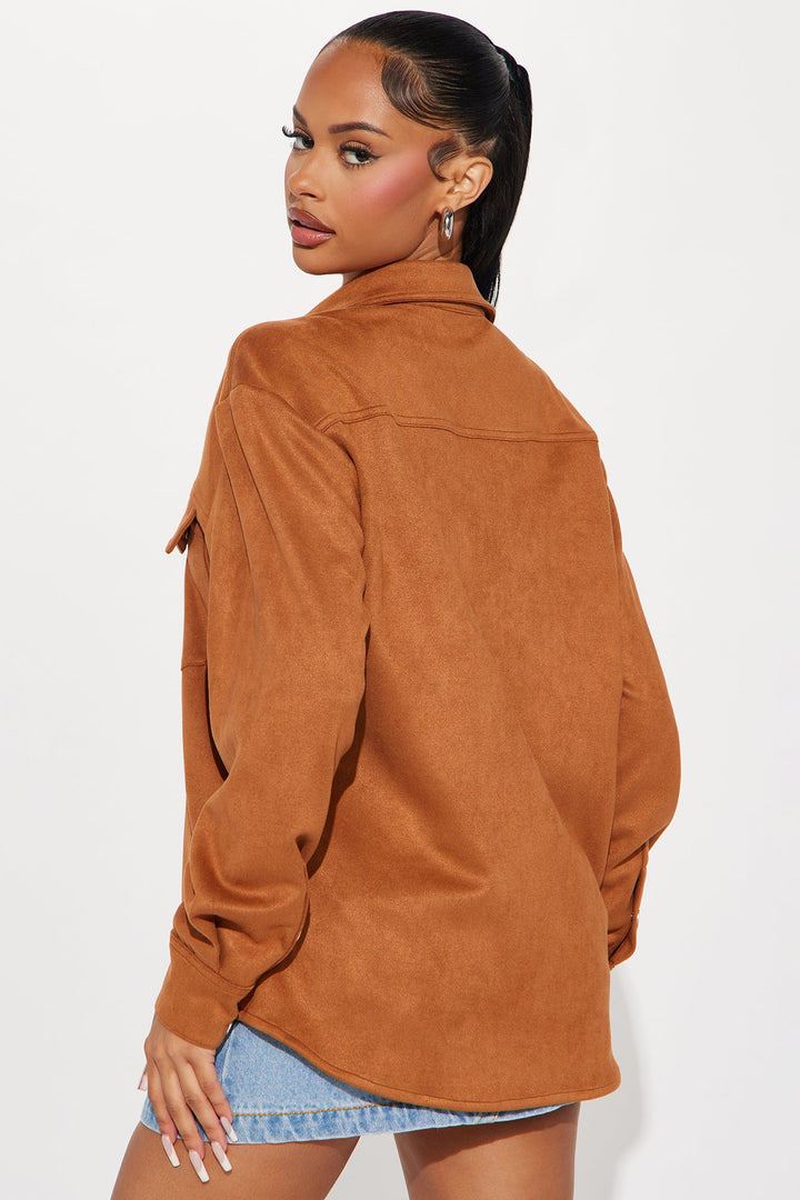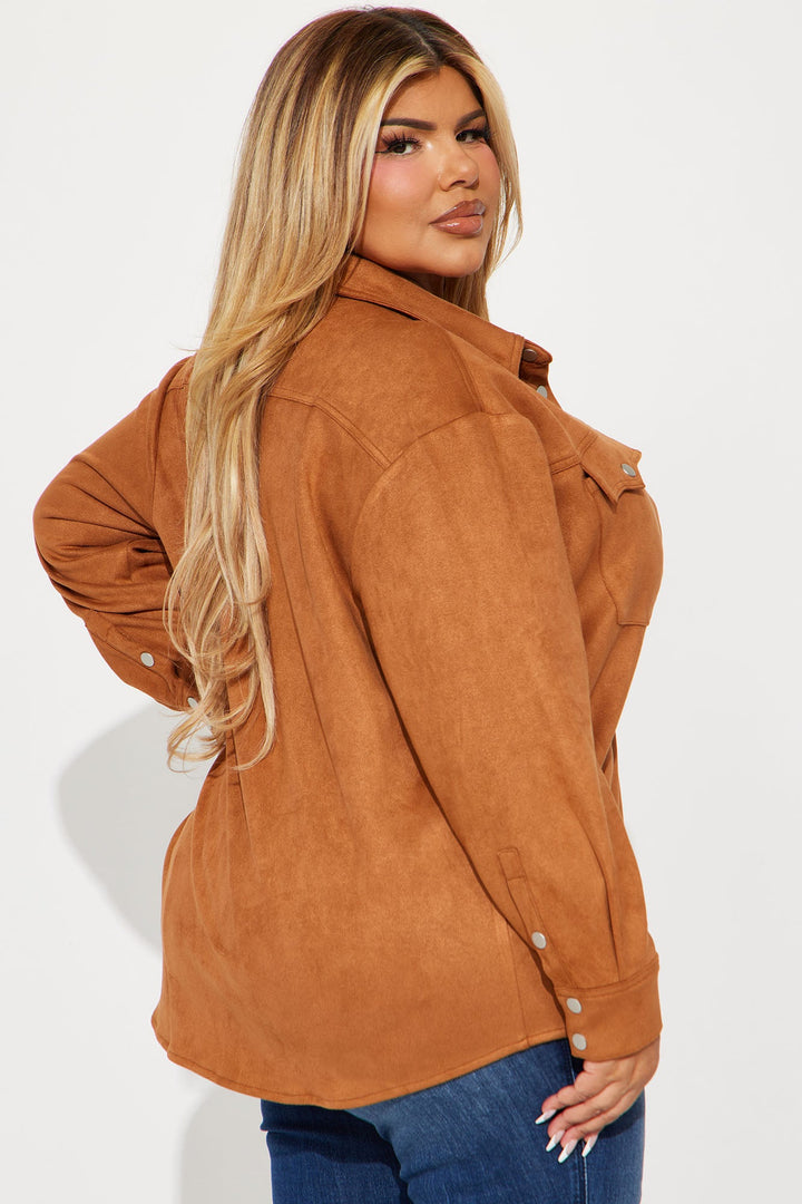 Available In Camel. | Faux Suede Shirt | Long Sleeve | Snap Button Down | Collar | 2 Front Pockets | Partially Stretch | 95% Polyester 5% Spandex | Imported