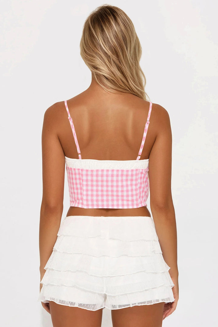 Available In Pink/combo. | Gingham Corset Top | Non Stretch | Adjustable Straps | Boning | Contrast Detail | Invisible Zipper | Self: 65% Polyester 35% Cotton | Contrast: 97% Cotton 3% Spandex | Imported