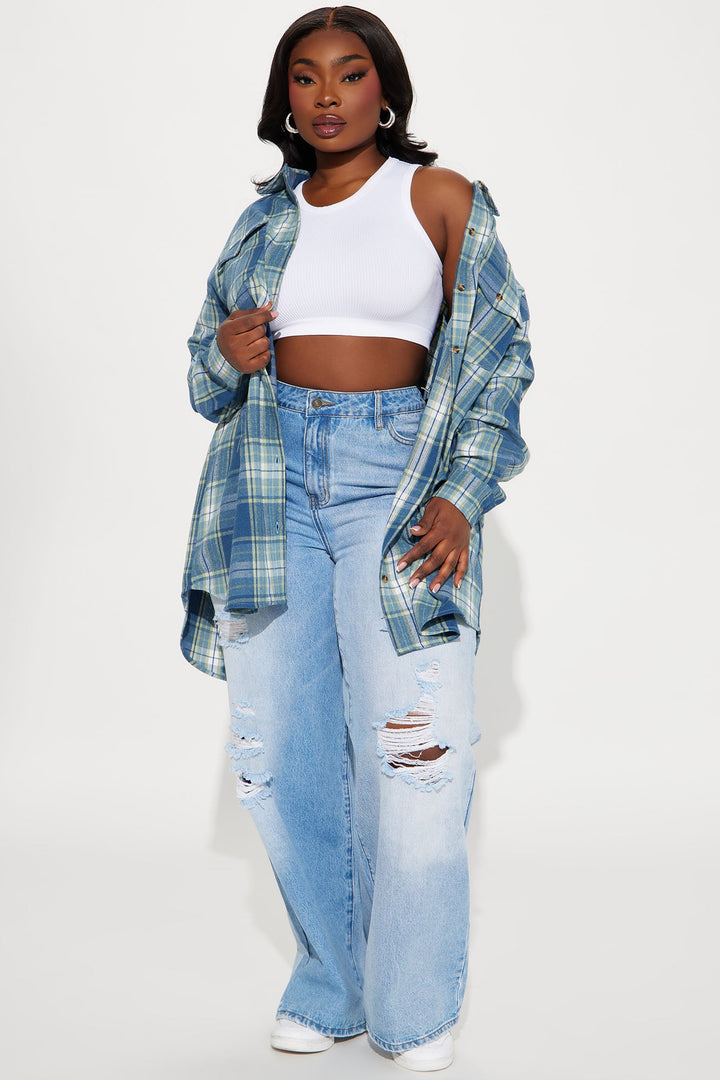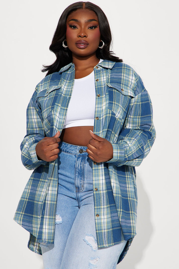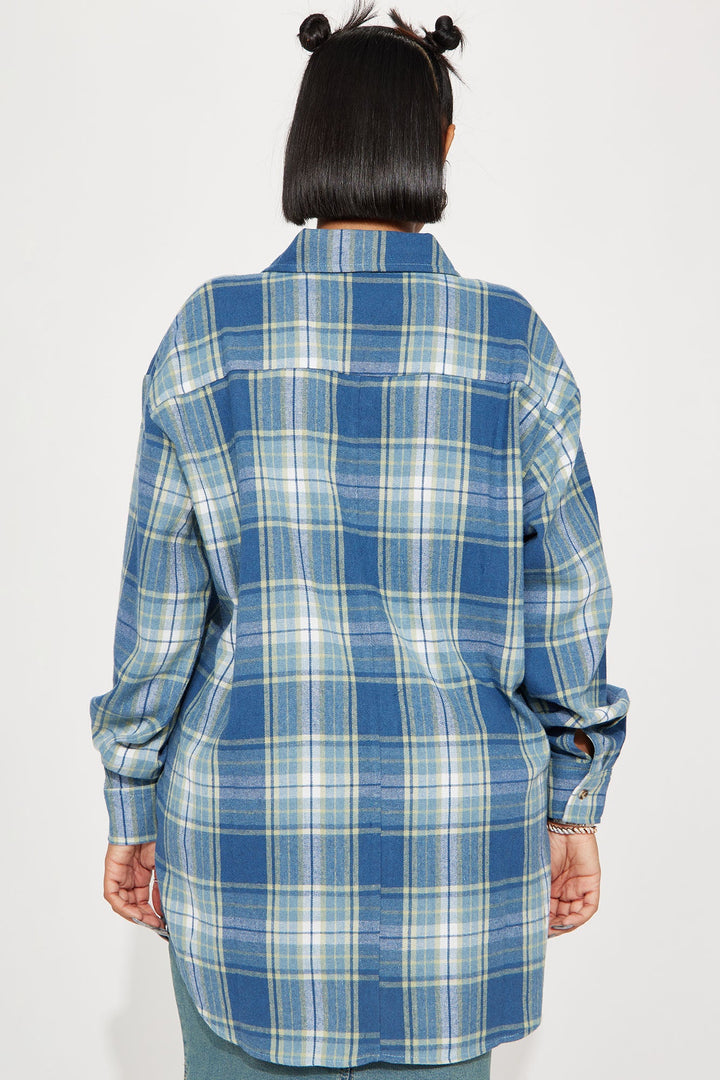Pretty in Plaid Oversized Flannel Top - Blue/combo