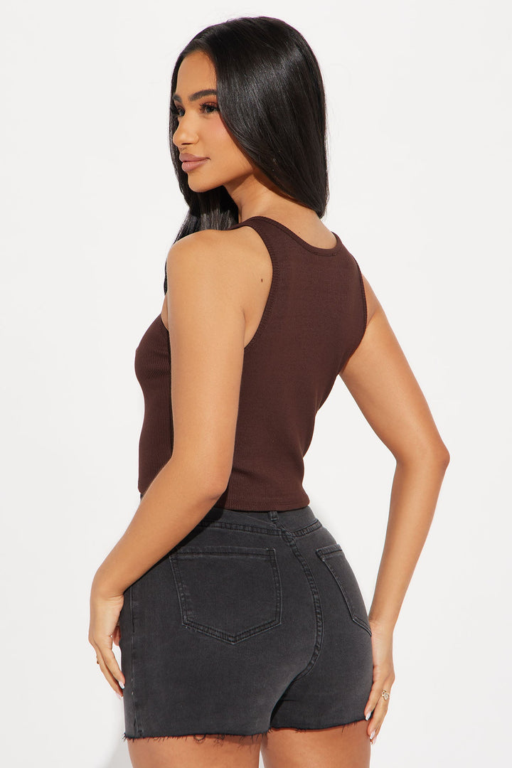 Available In Chocolate. | Ribbed Top | Stretch | Lace Up | Bungee Strap | Cropped | 95% Rayon , 5% Spandex | Imported