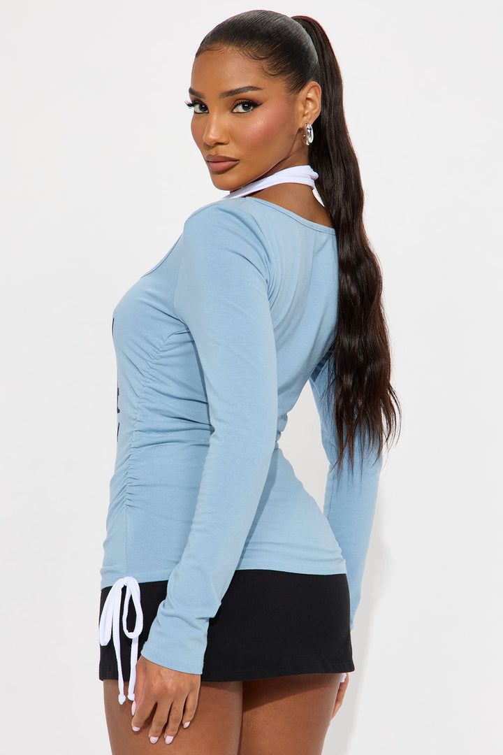 Available In Blue. | Double Layer Top | Long Sleeve | Scoop Neck | Front Screen | Self- 95% Cotton 5% Spandex | Contrast- 95% Cotton 5% Spandex | Imported