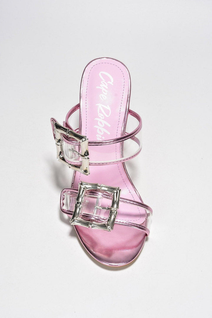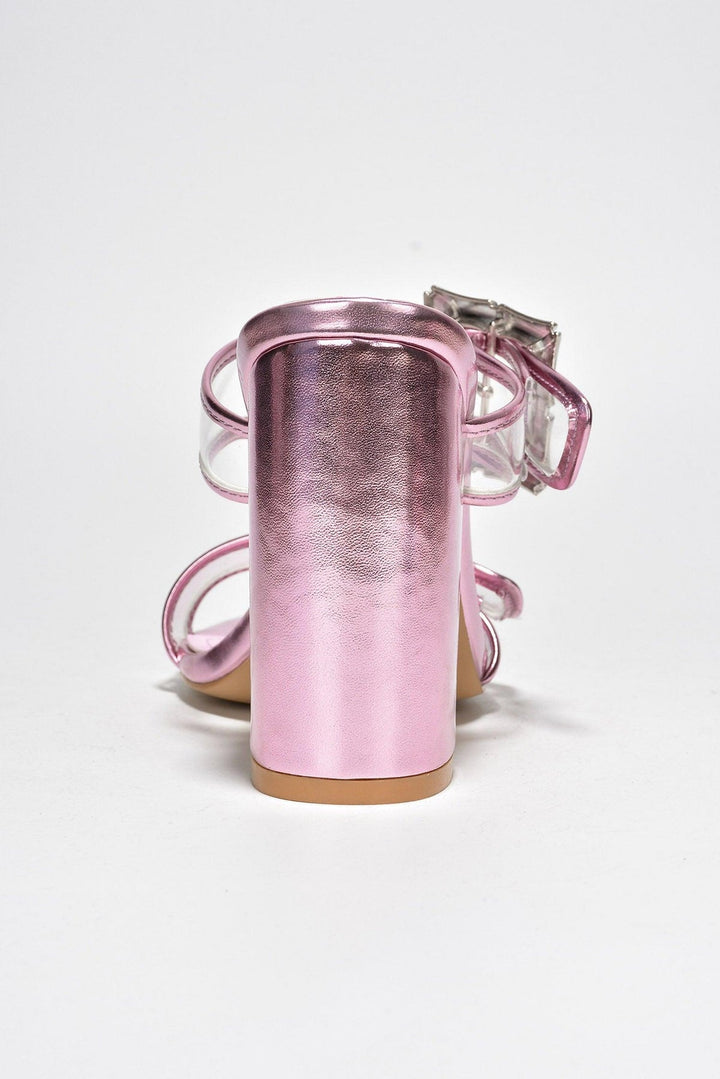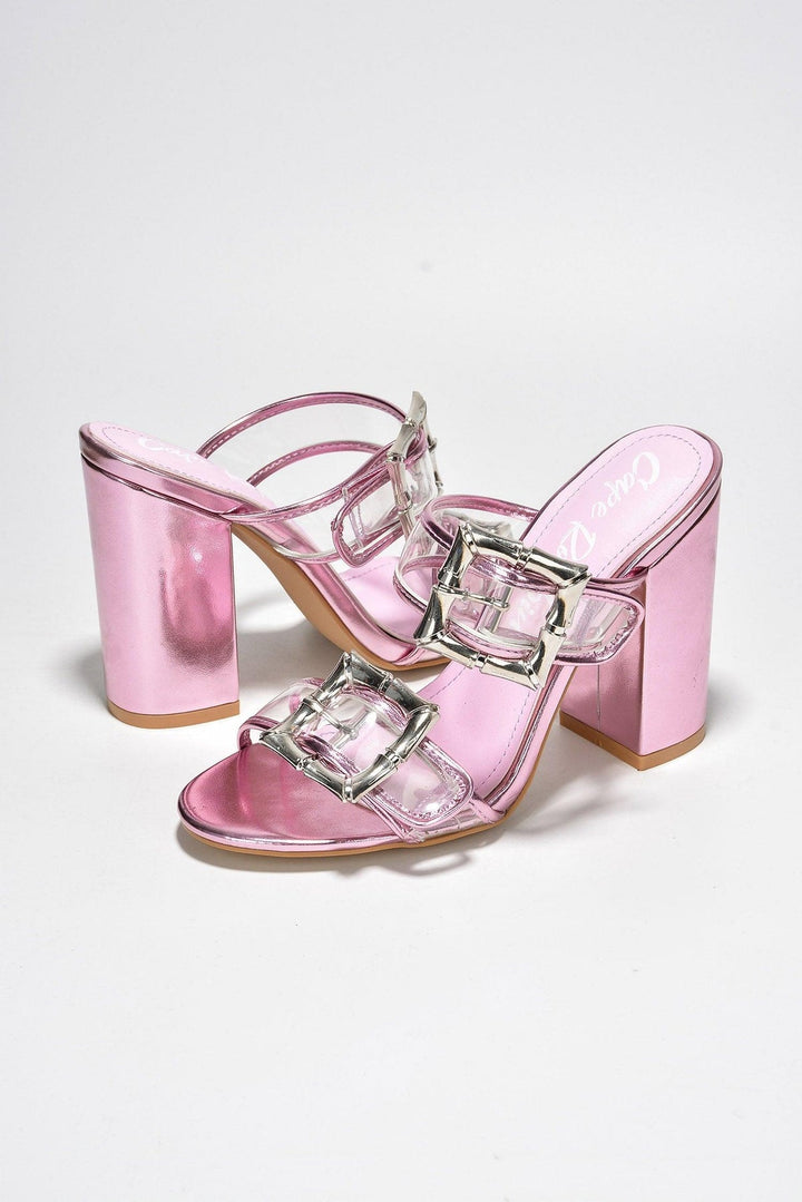 PRUNELLA - PINK - HEELS by CAPE ROBBIN open round toe PU buckle detailing lightly cushioned footbed TPU rubber outsole Prunella offers height and sheen for a memorable night. Features a stunning metallic finish with an undeniable shimmer,a sturdy high block heel for elevated style and comfort,and a zesty buckle for a one-of-a-kind vibe.