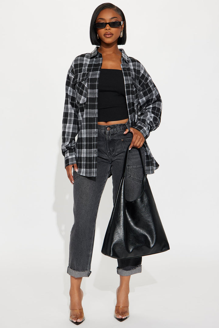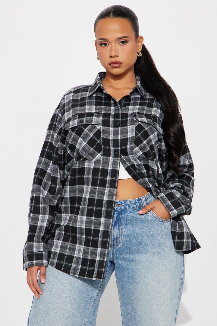 Available In Black/combo And Grey/combo. | Flannel Shirt | Plaid | Button Up | Front Pockets | Non Stretch | Disclaimer: Pattern Placement May Vary. | 75% Polyester 25% Cotton | Imported