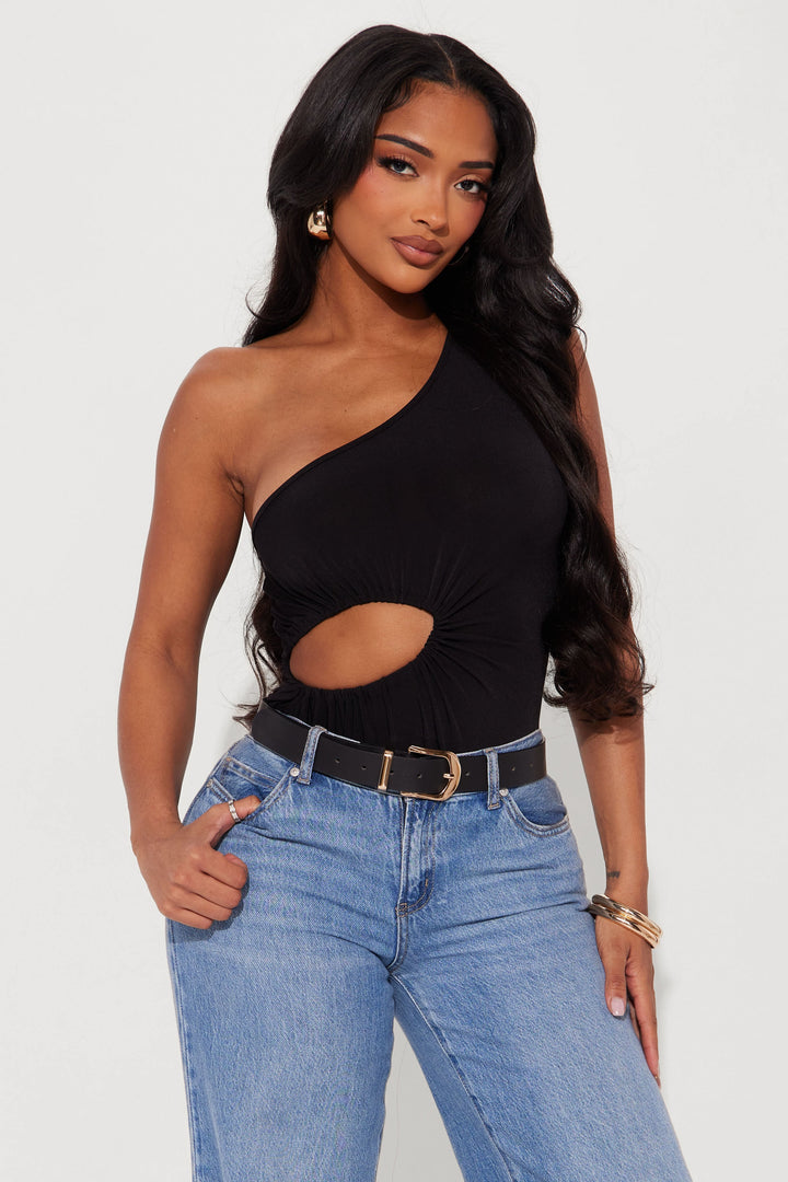Raquel One Shoulder Cut Out Bodysuit - Black