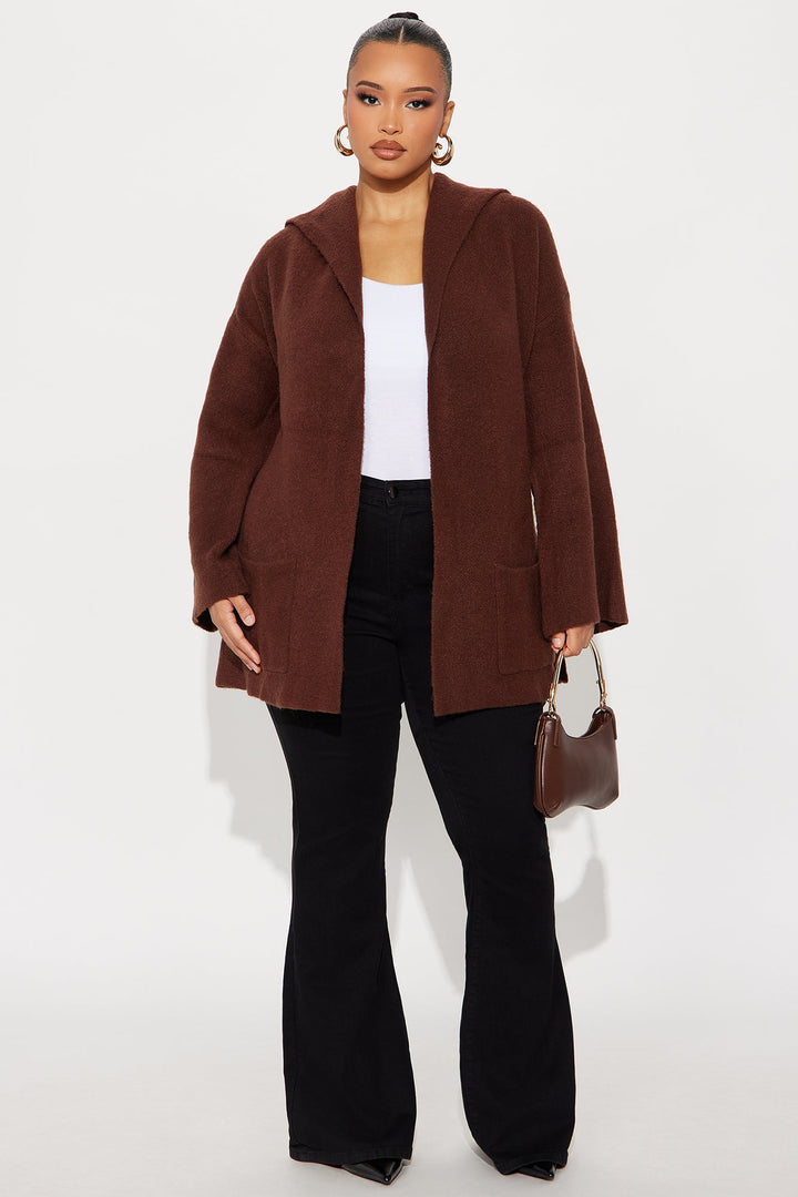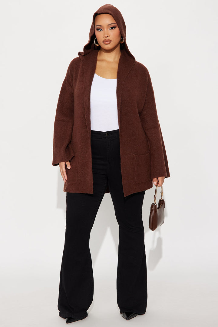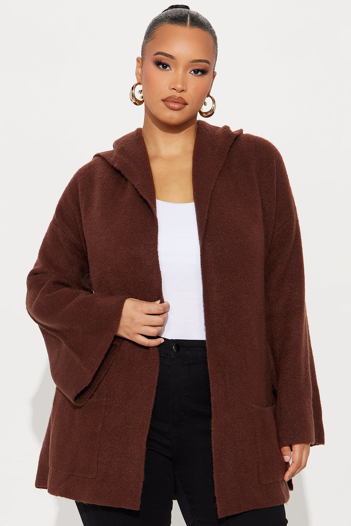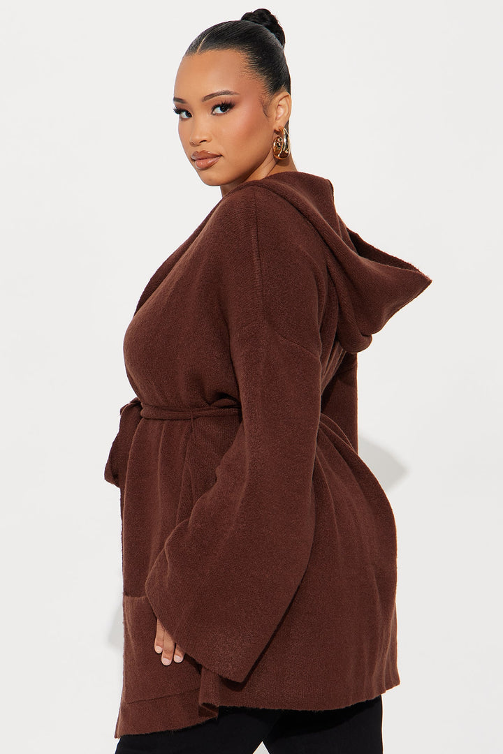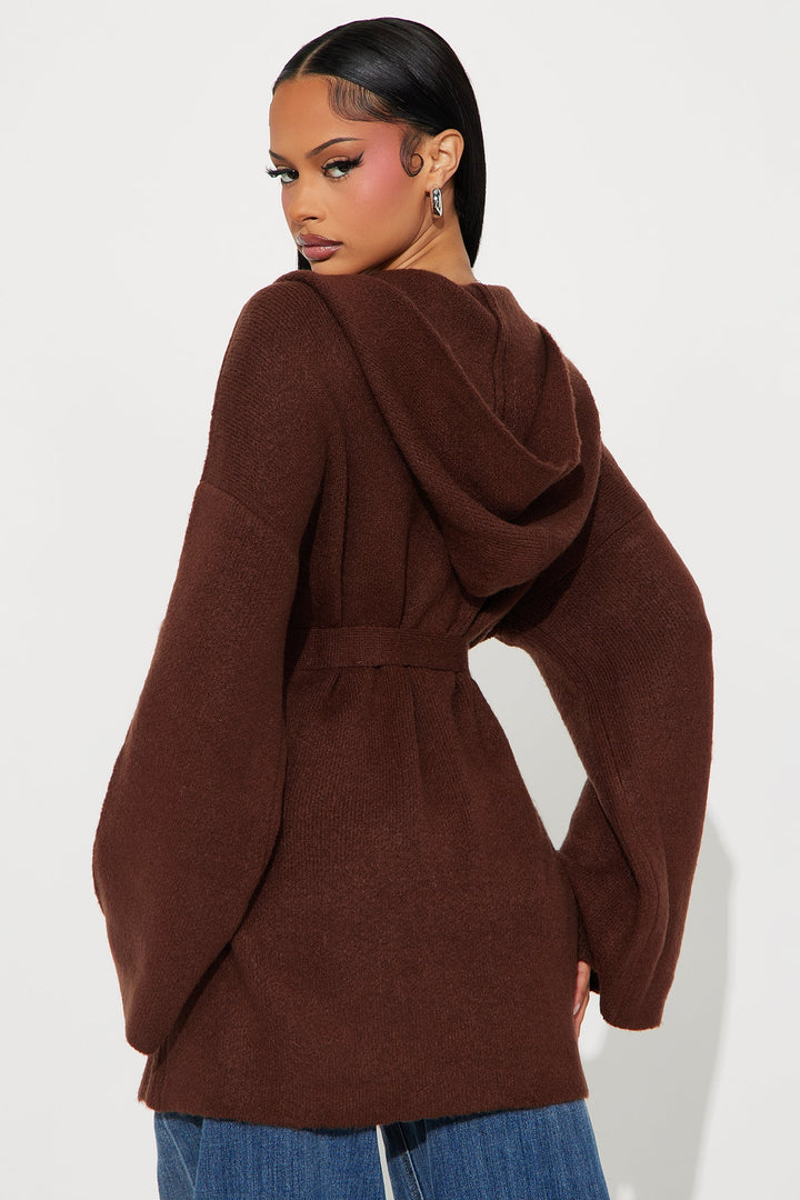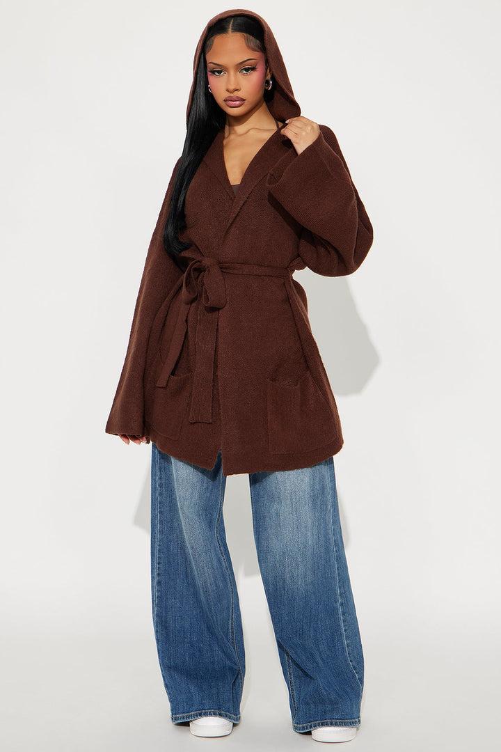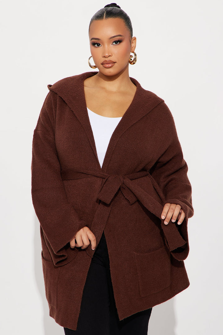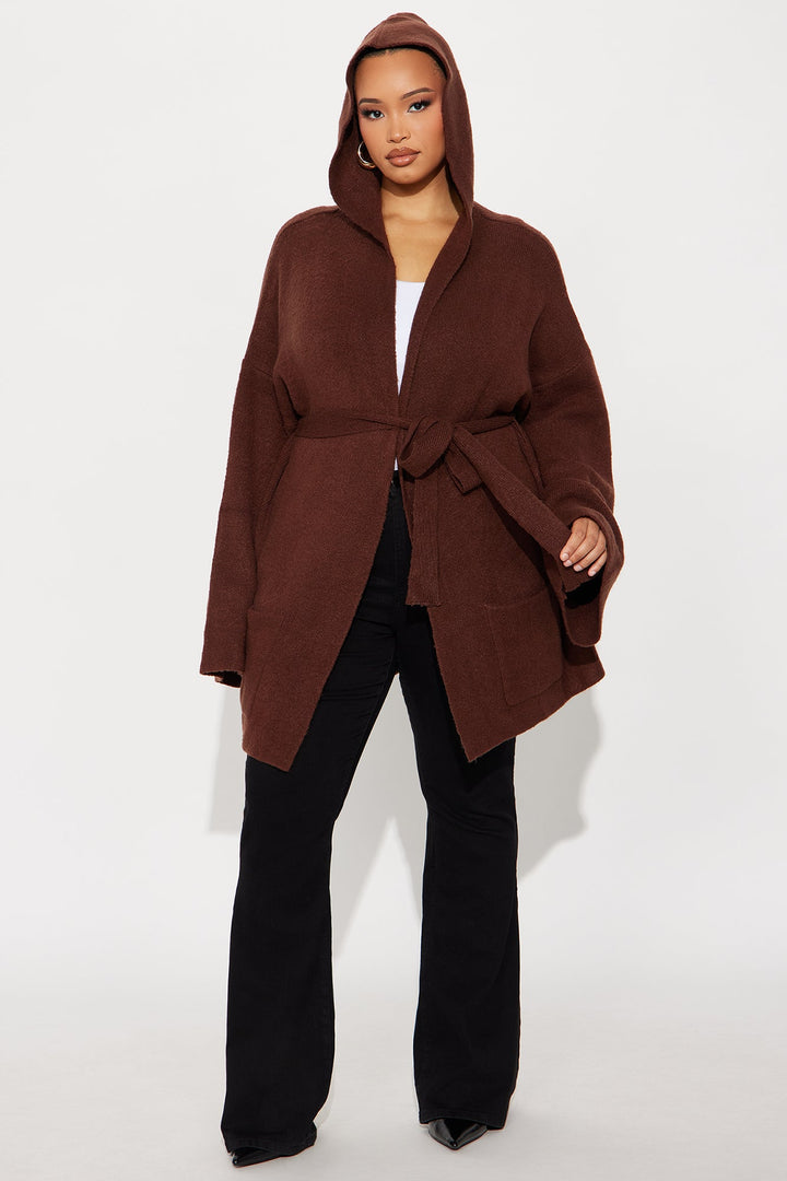 Available In Brown And Ivory. | Cardigan | Open Front | Hooded | Removable Belt | Front Pockets | Self: 66%Acrylic 31%Nylon 3%Spandex | Imported