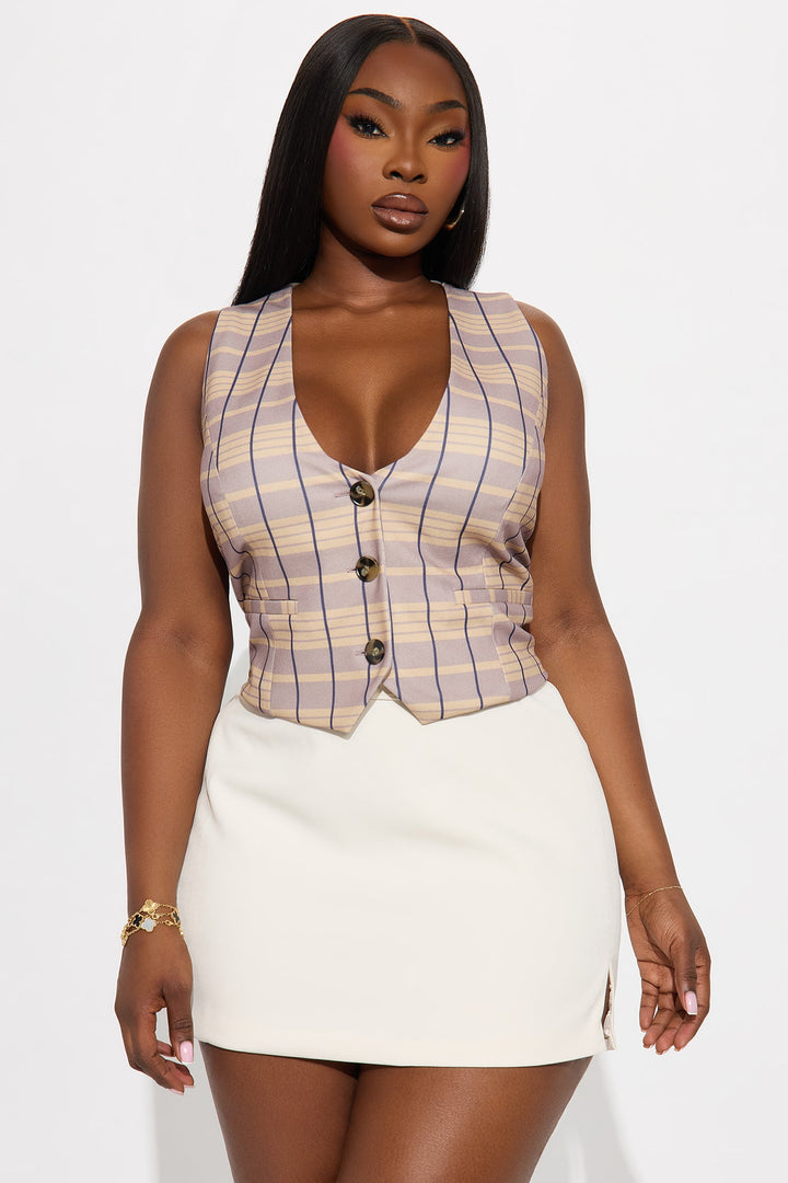 Read Between The Lines Plaid Vest Top - Taupe/combo
