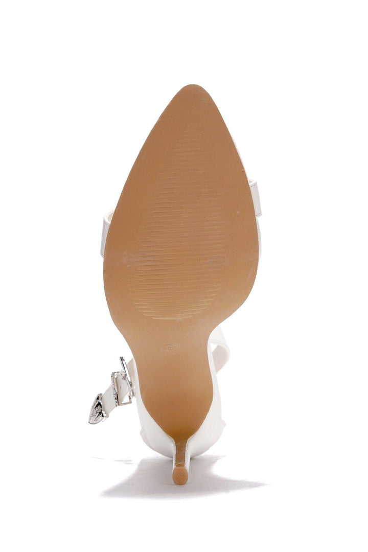 REBEKAH - WHITE - HEELS by CAPE ROBBIN open pointy toe PU lightly cushioned footbed rubber outsole buckle closure Elegance in simplicity. Crafted with select materials,Cape Robbin's Rebekah is designed to elevate your wardrobe for years. Perfect with tailored pants for casual Fridays or a flowy dress for cocktails with friends.