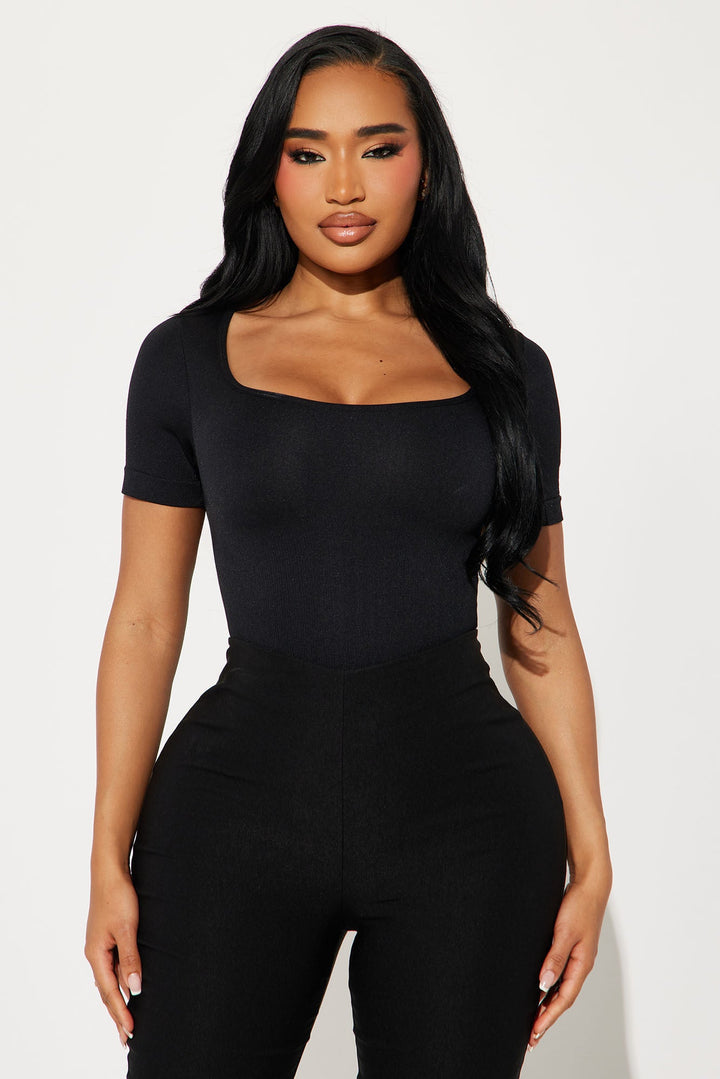 Available In Black. | Seamless Bodysuit | Short Sleeve | Waist Sculpting Detail | Thong Bottom | Snap Closure | Stretch | Final Sale | Self: 49% Nylon 45% Polyester 6% Spandex | Imported
