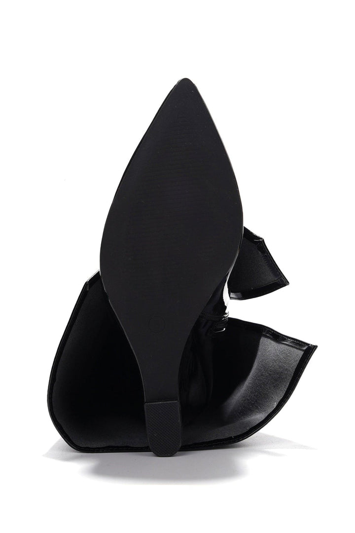RESARA - BLACK - BOOTS by CAPE ROBBIN pointy toe metallic knee-high boots front slit fold-over ombre Forget about blending in! You'll shine all night long in these metallic boots. These darlings are sure to make you stand out like a queen.