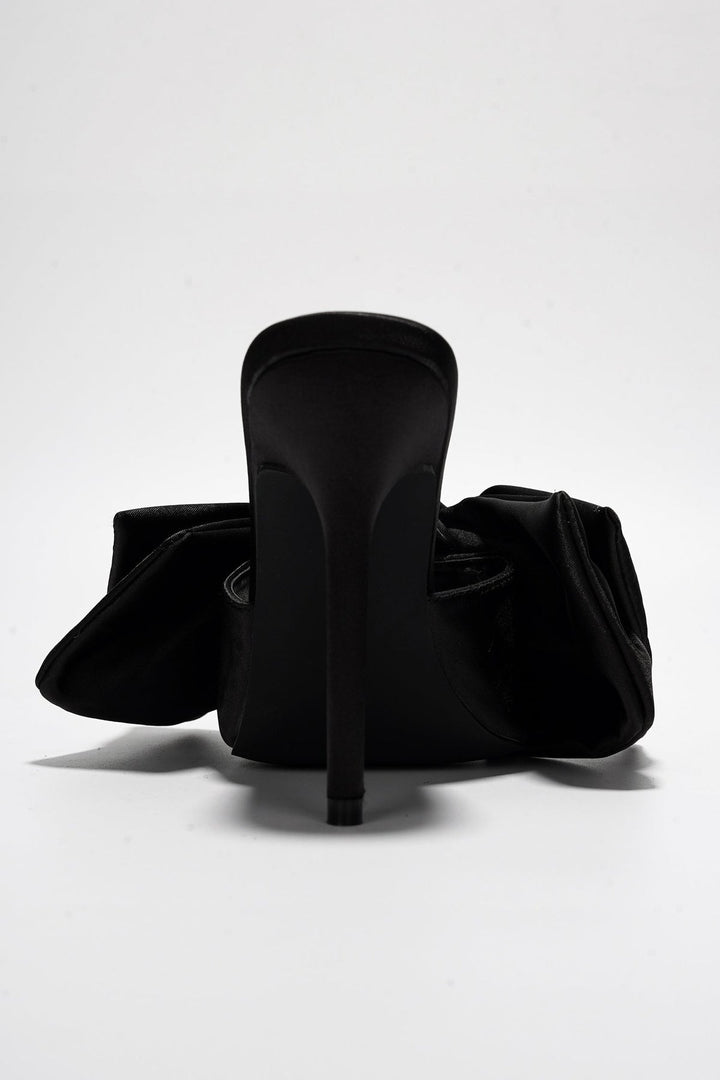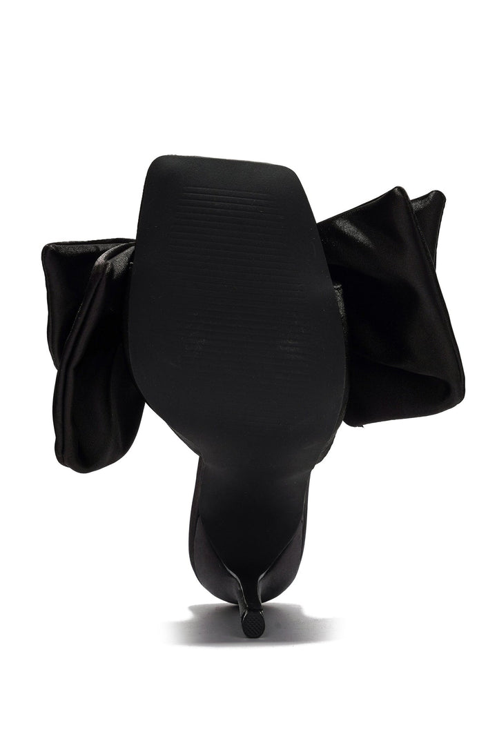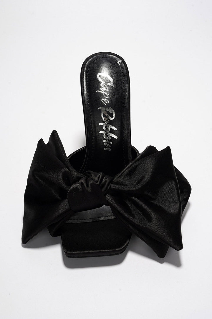 RHIANNA - BLACK - HEELS by CAPE ROBBIN Stiletto Heel: 4.25 inch Slip on Heeled Sandals PU leather insole with memory foam cushioning for added comfort Oversized bow Square toe Elevate your style with Rhianna chic high heel sandals,featuring an elegant satin or trendy denim finish,and an oversized bow detail. Perfect for parties and special occasions,these versatile stiletto heels offer comfort and sophistication.