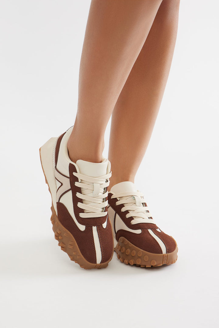 Available In Beige/Brown. | Low Top Sneakers | Lace Up | Round Toe | Flat Heel | Imported
