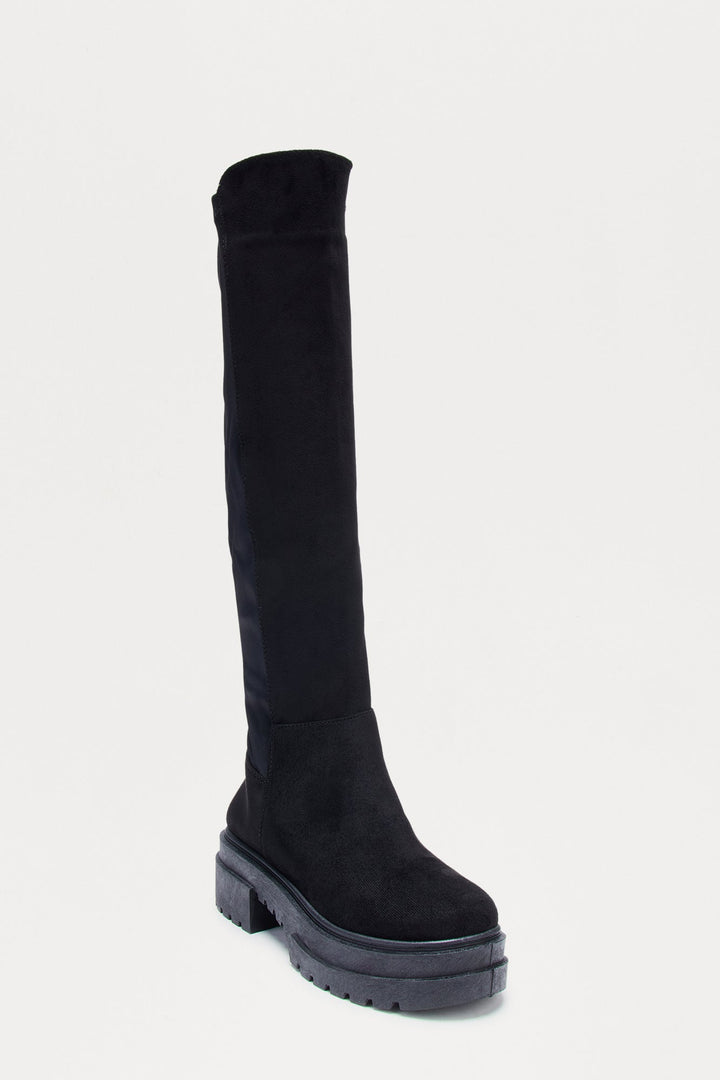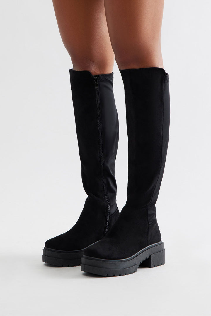Available In Black. | Knee High Flat Boots | Round Toe | Flat Heel | Imported