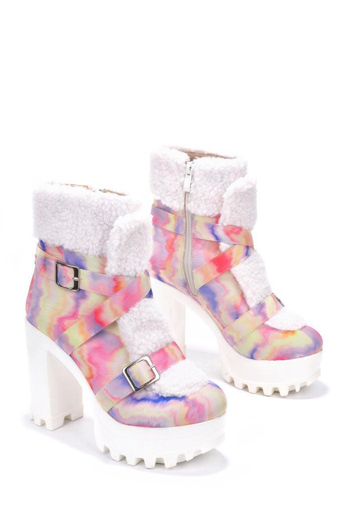 ROANNA - WHITE - BOOTIES by CAPE ROBBIN round toe block high heel booties lug platform fur-lined zipper closure buckle trim These Roanna booties are the perfect mix of modern and edgy. The fur-lined interior keeps your feet cozy all day long. The zipper closure adds a touch of classic style,while the lug outsole ensures traction. Roannas are ideal for any season,and will add the perfect finishing touch to any outfit. White,black,brown.