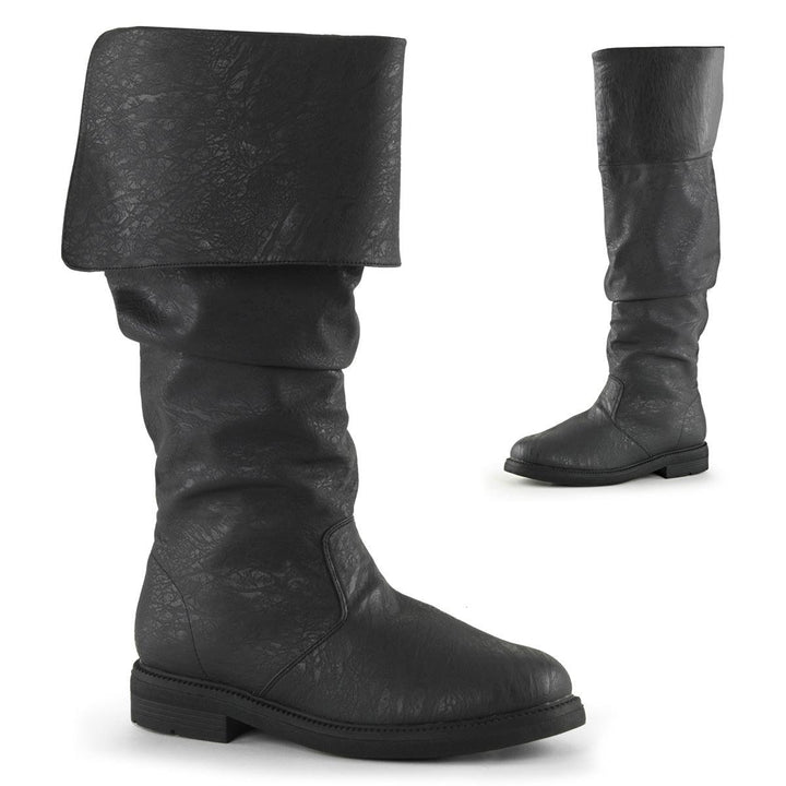 1""(2.5cm) Flat Heel Cuffed Knee High Renaissance Boot, Inner Side Zip Closure