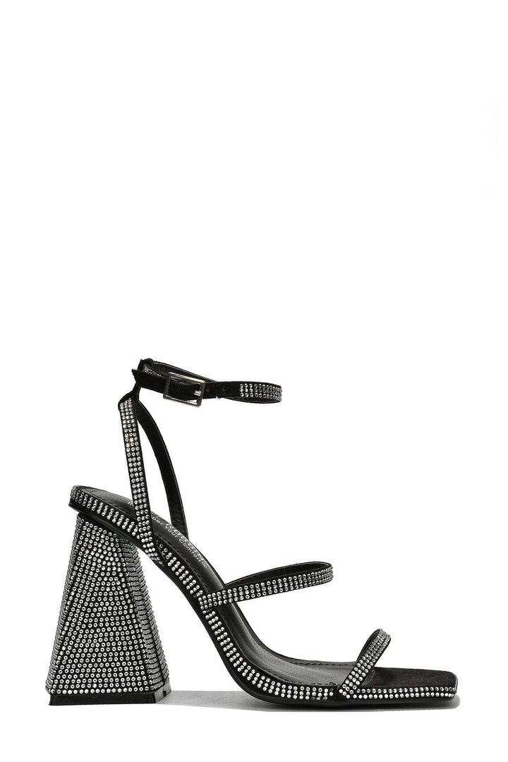 ROOTY - BLACK - HEELS by CAPE ROBBIN square toe high block heels rhinestone crusted heel single sole These Rooty heels are great for dancing the night away! The rhinestone-covered heel gives them a chic and one-of-a-kind look. You'll be sure to stand out and stay comfy all evening!