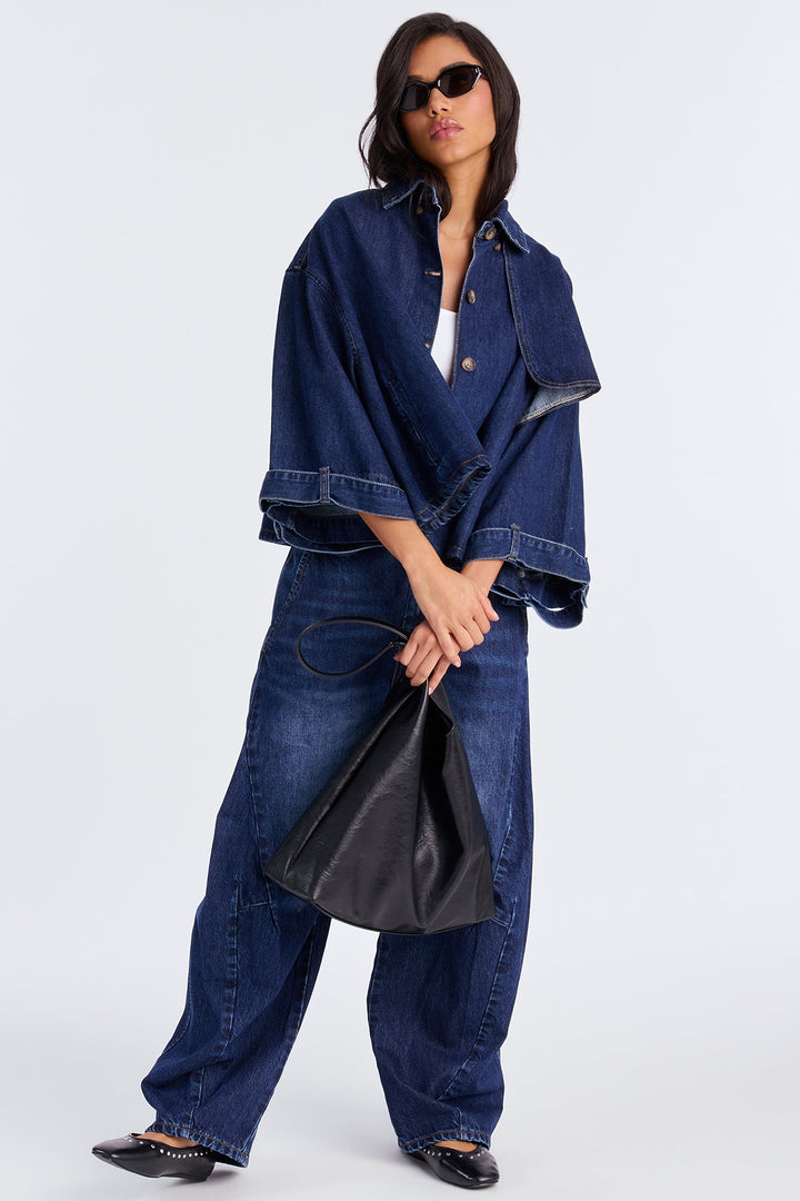 Available In Dark Wash. | Barrel Jean | Pockets | Seaming | 12" Rise | 29" Inseam | Non-Stretch | Disclaimer: Due To The Specialized Wash, Each Garment Is Unique. | 100% Cotton | Imported