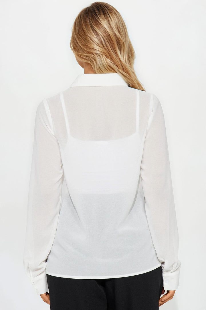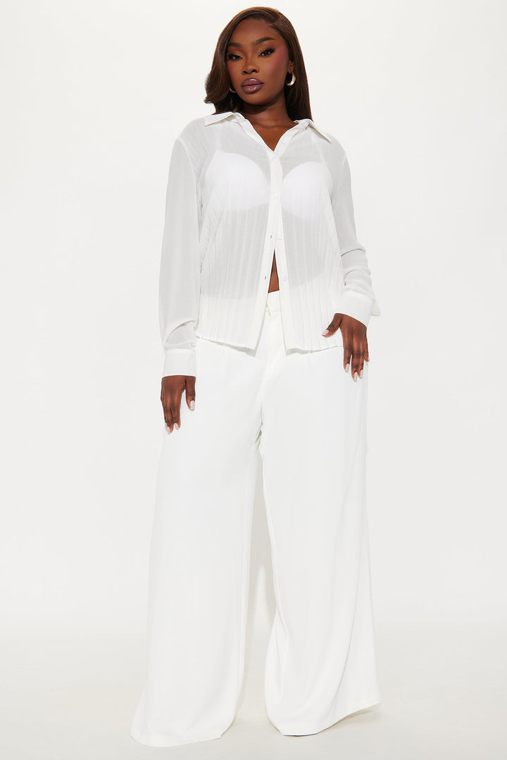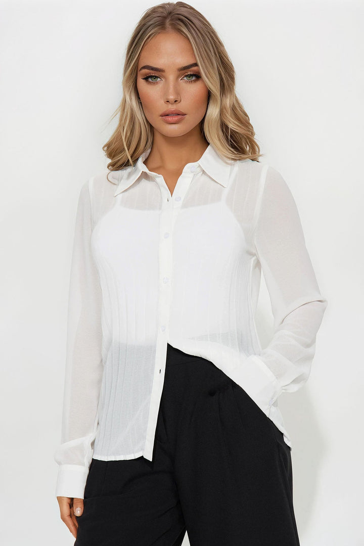 Available In Blush And White. | Chiffon Shirt | Pleated Detail | Button Up | Non Stretch | 100% Polyester | Imported