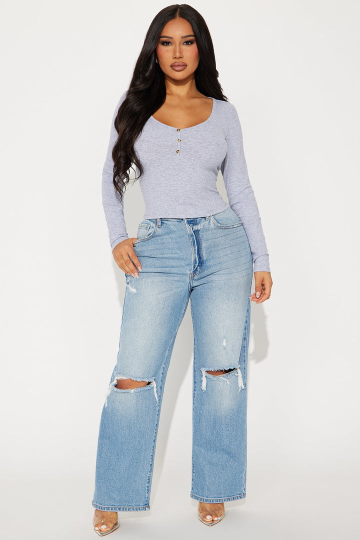 Available In Black, Heathered Grey And Sand. | V- Neck | Long Sleeve | Button Up Detail | Stretch | 56% Cotton 37% Rayon 7% Spandex | Imported